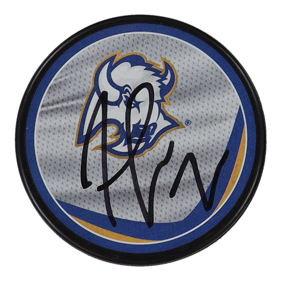 Buffalo Sabres logo hockey puck. Hand-signed by Tage Thompson.