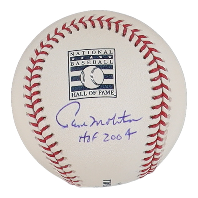 Rawlings Official Major Hall of Fame Logo League baseball has been hand-signed and inscribed by Paul Molitor (Minnesota Twins, HOF). Please note, the baseball is naturally toned.