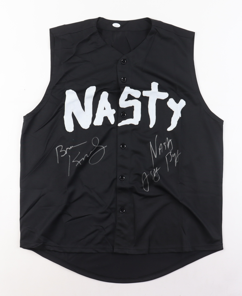 Custom jersey. Everything is sewn on, size XL. Hand-signed and inscribed by Brian Knobbs and Jerry Sags (The Nasty Boys).