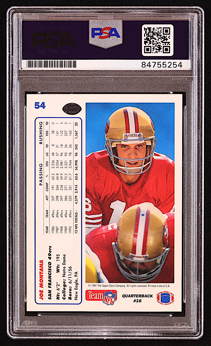 Joe Montana Signed 1991 Upper Deck #54 / 3X (PSA)
