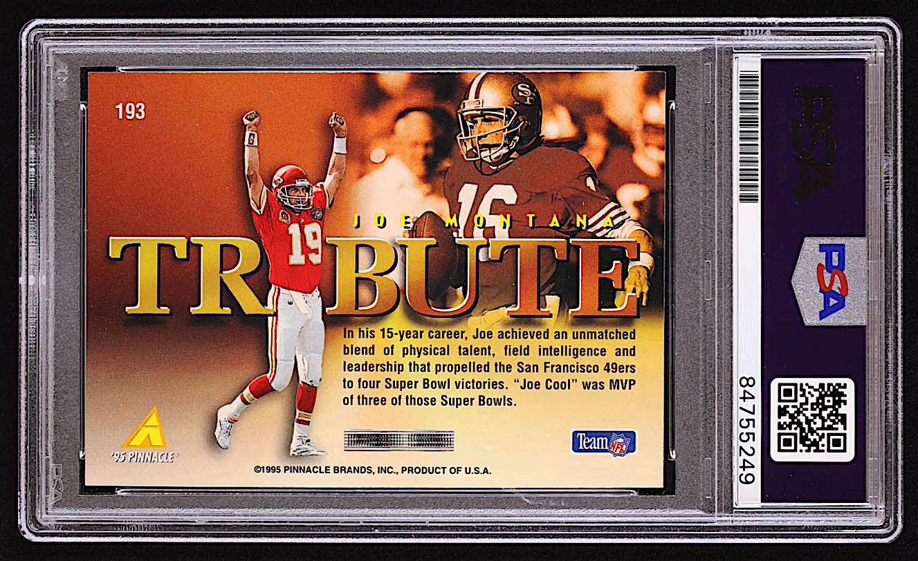 Joe Montana Signed 1995 Pinnacle #193 (PSA)