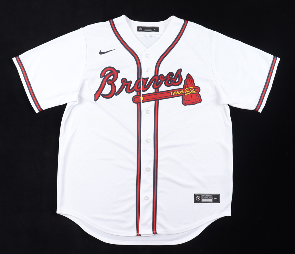 Nike jersey with everything pressed on, size L. Hand-signed by Ronald Acuna Jr. (Atlanta Braves).