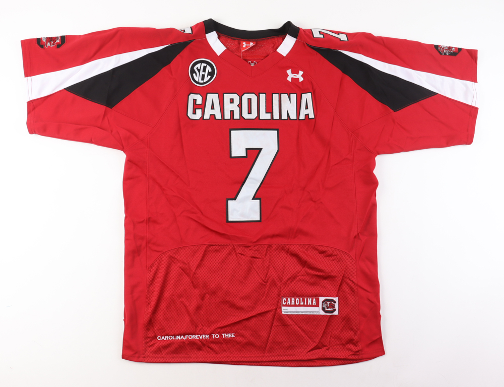 Under Armour jersey. Everything is sewn on, size 52. Hand-signed by Jadeveon Clowney. Please note, the signature has bled.