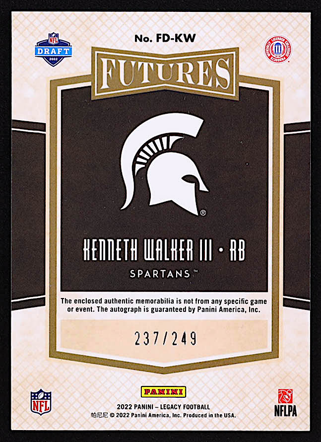 Kenneth Walker III 2022 Panini Legacy Futures Dual Patch Autographs #12 RC #237/249