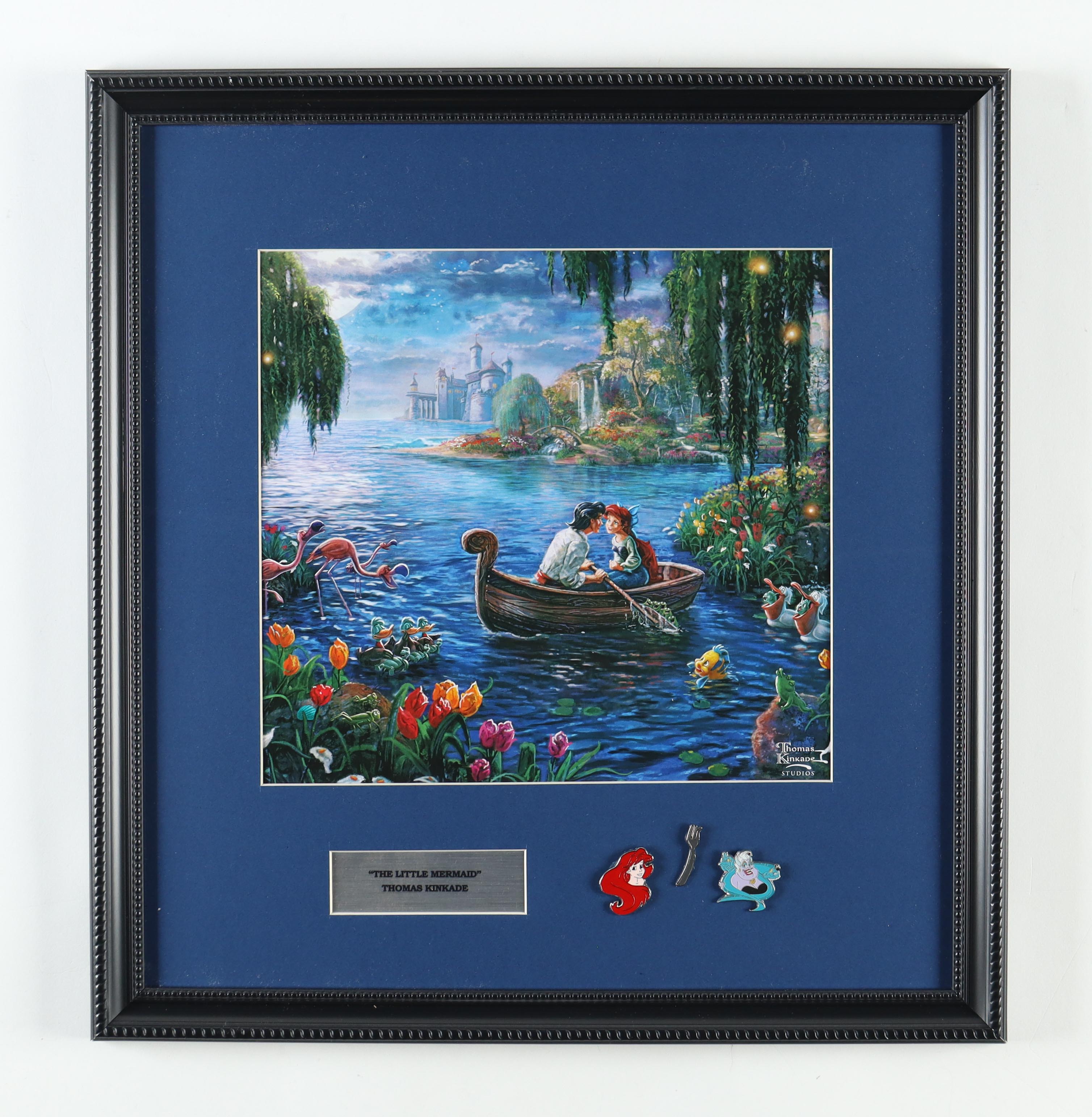 Thomas Kinkade "The Little Mermaid" Custom Framed Print with Set of (3) Disney Little Mermaid Pins