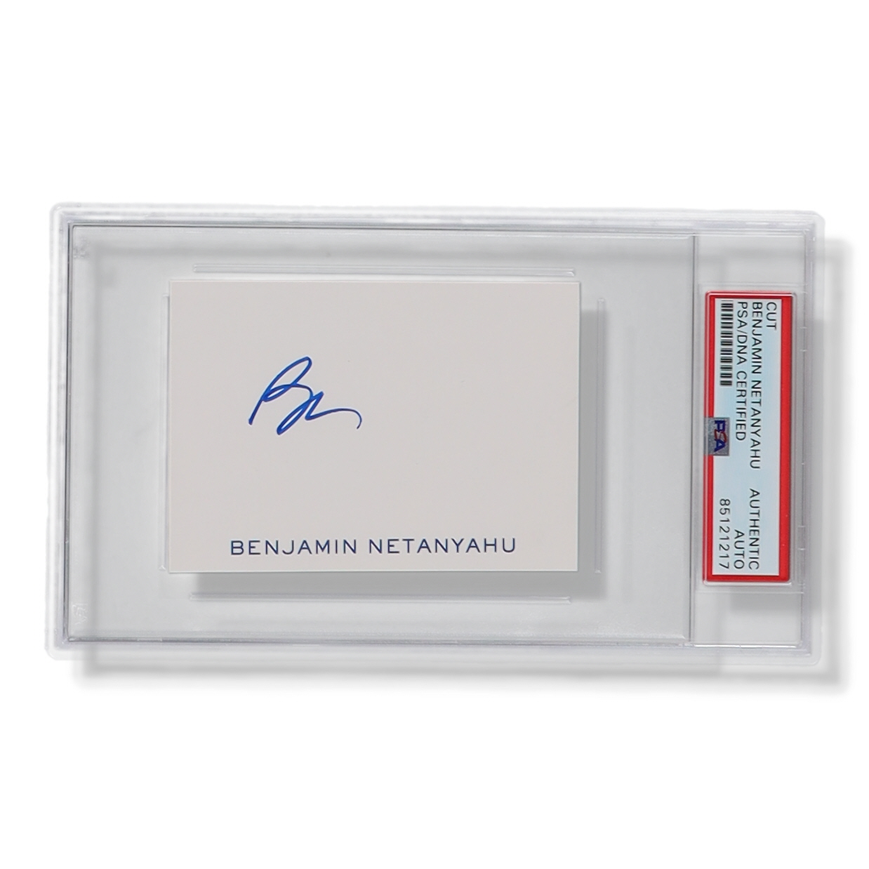 Cut measures 3" x 4" in size. Hand-signed by Benjamin Netanyahu.