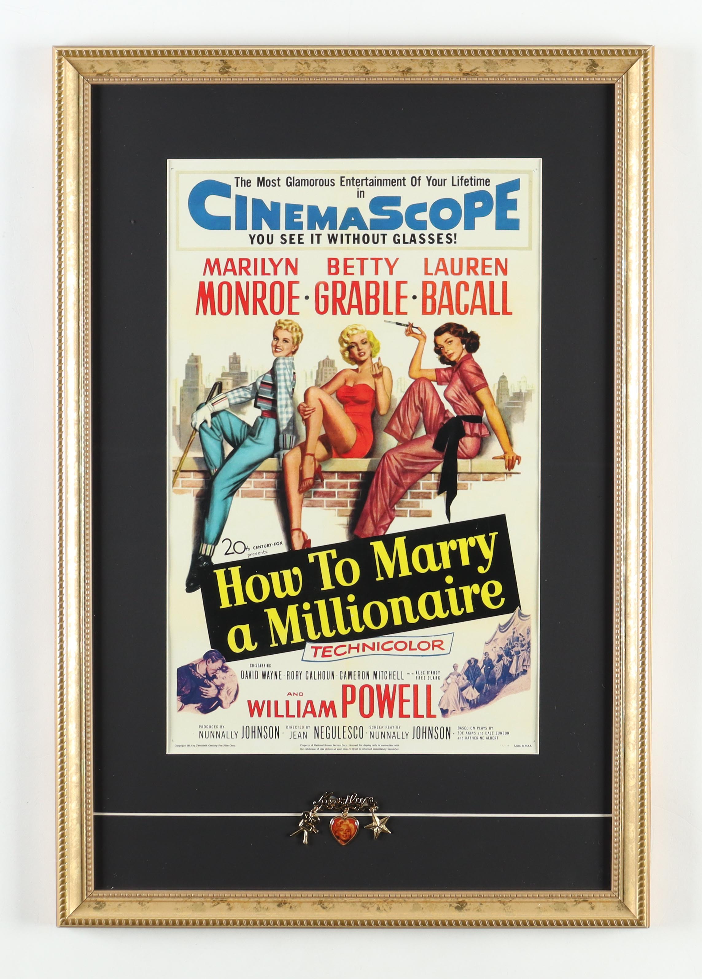 Marilyn Monroe Custom Framed "How To Marry a Millionaire" Poster with Monroe Hanging Pin