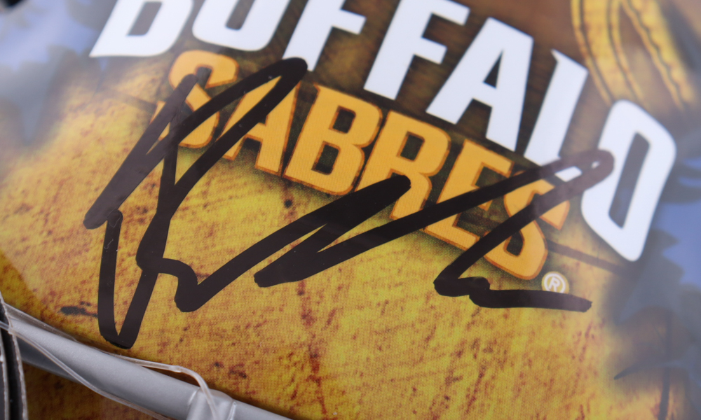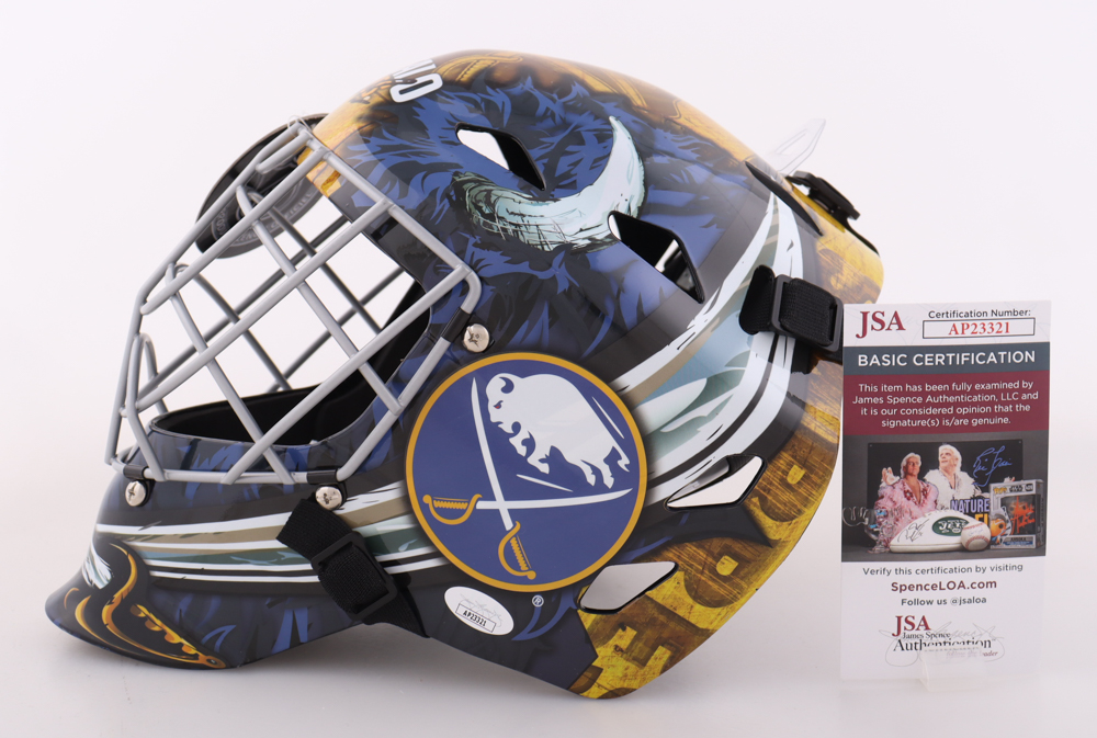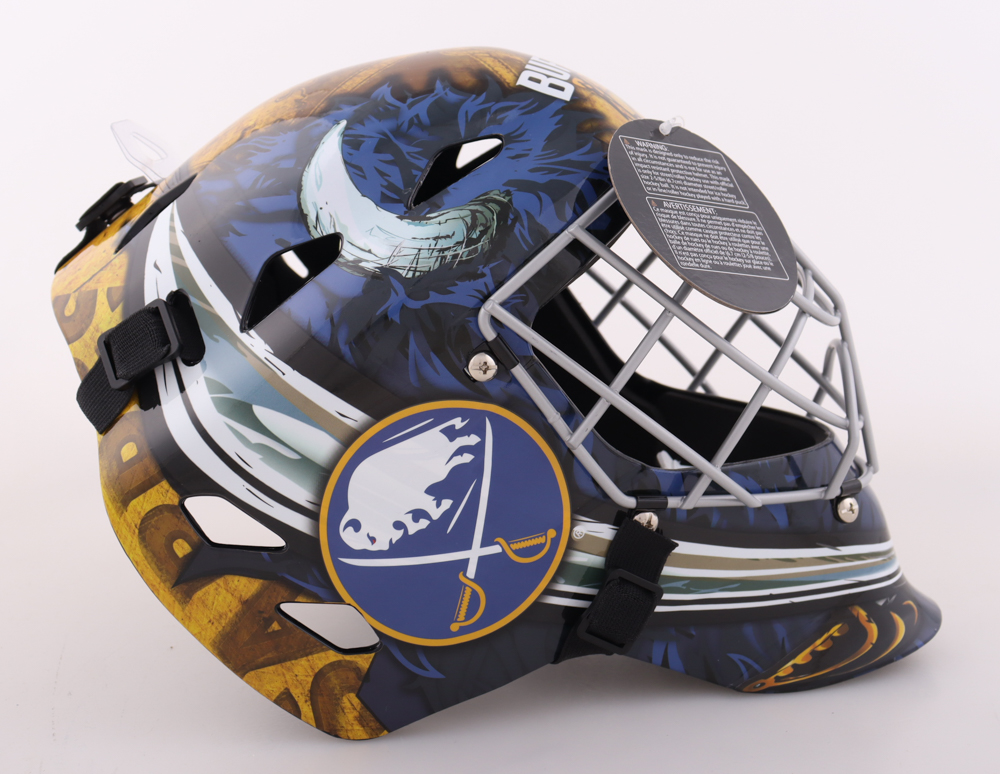 Franklin NHL Buffalo Sabres Full-Size Goalie Helmet. Hand-signed by Devon Levi.