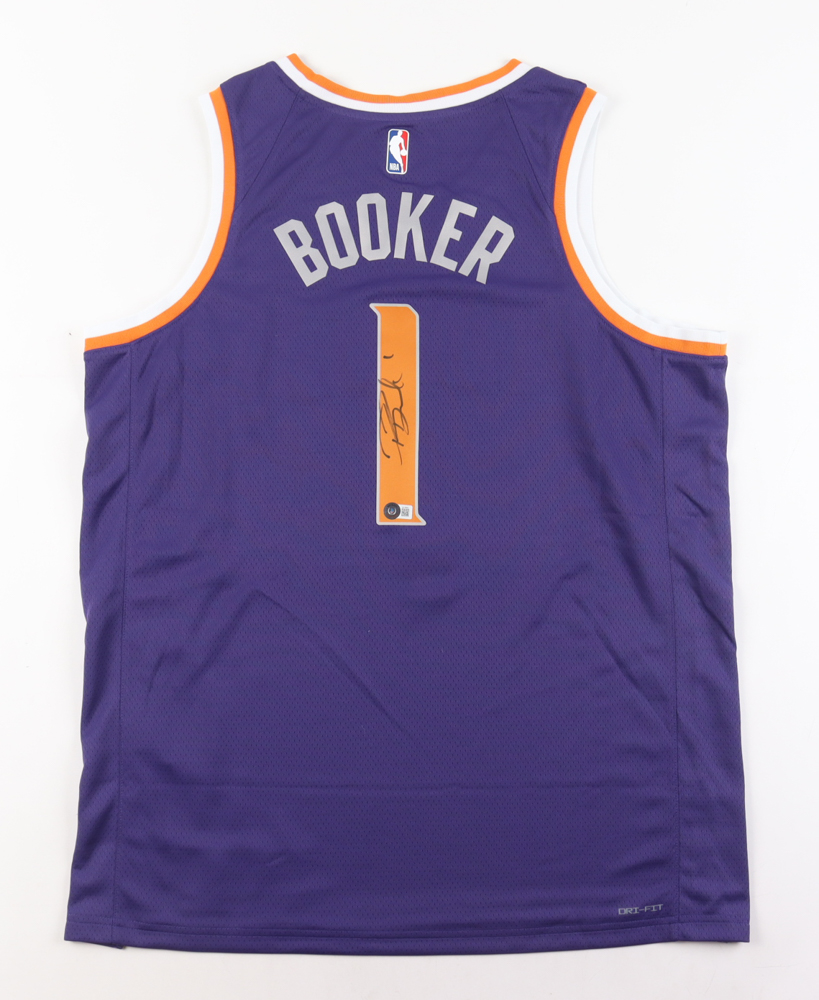 Nike jersey with everything pressed on, size XL. Hand-signed by Devin Booker (Phoenix Suns).
