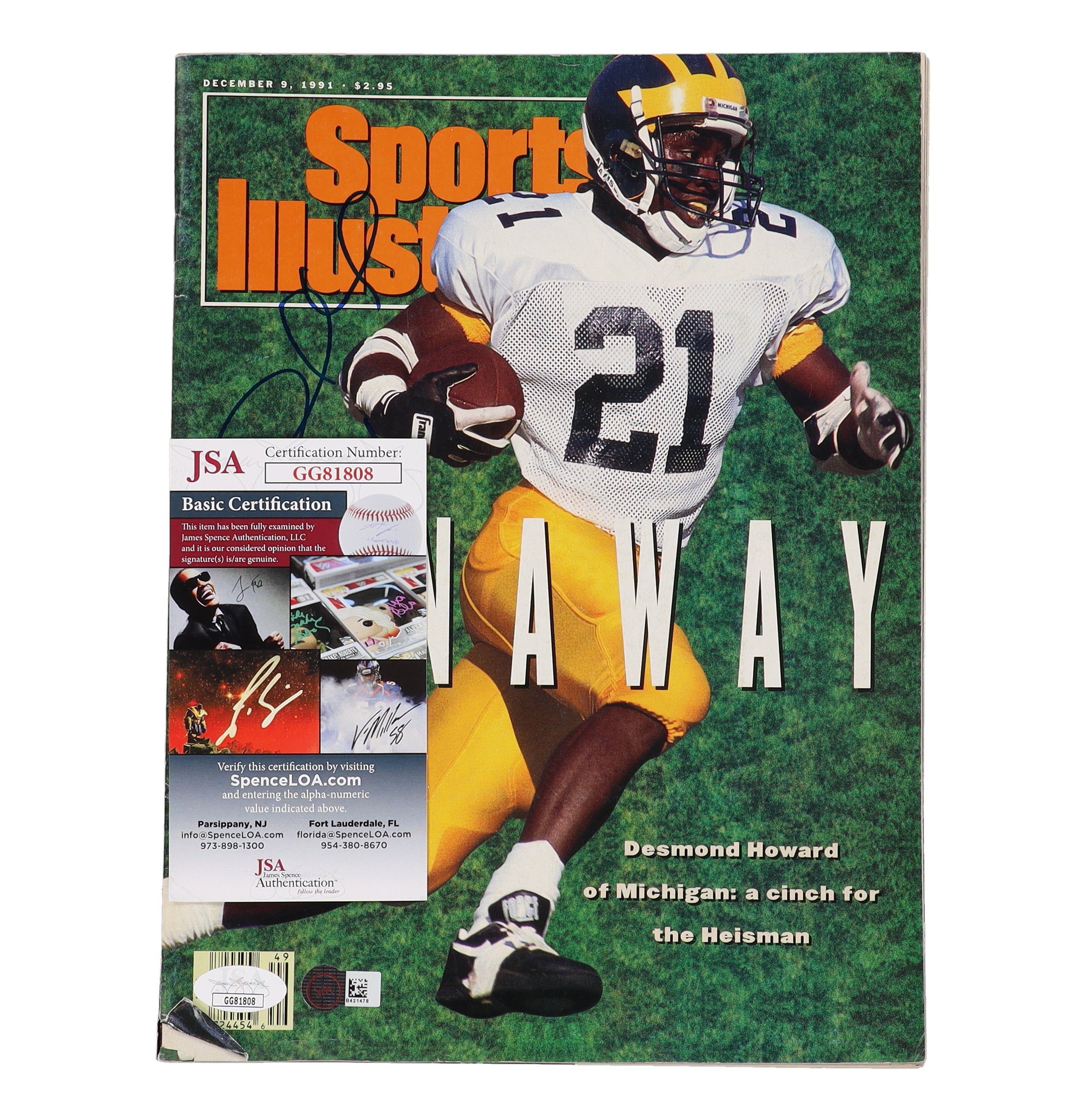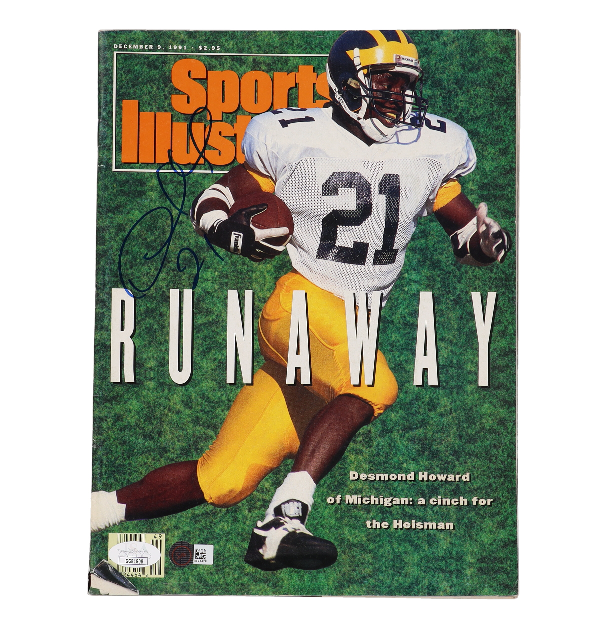 Magazine dated December 9, 1991. Hand-signed on the cover by Desmond Howard (HOF). Please note, magazine is torn and shows signs of wear. Refer to photos for more details on the condition of the item.