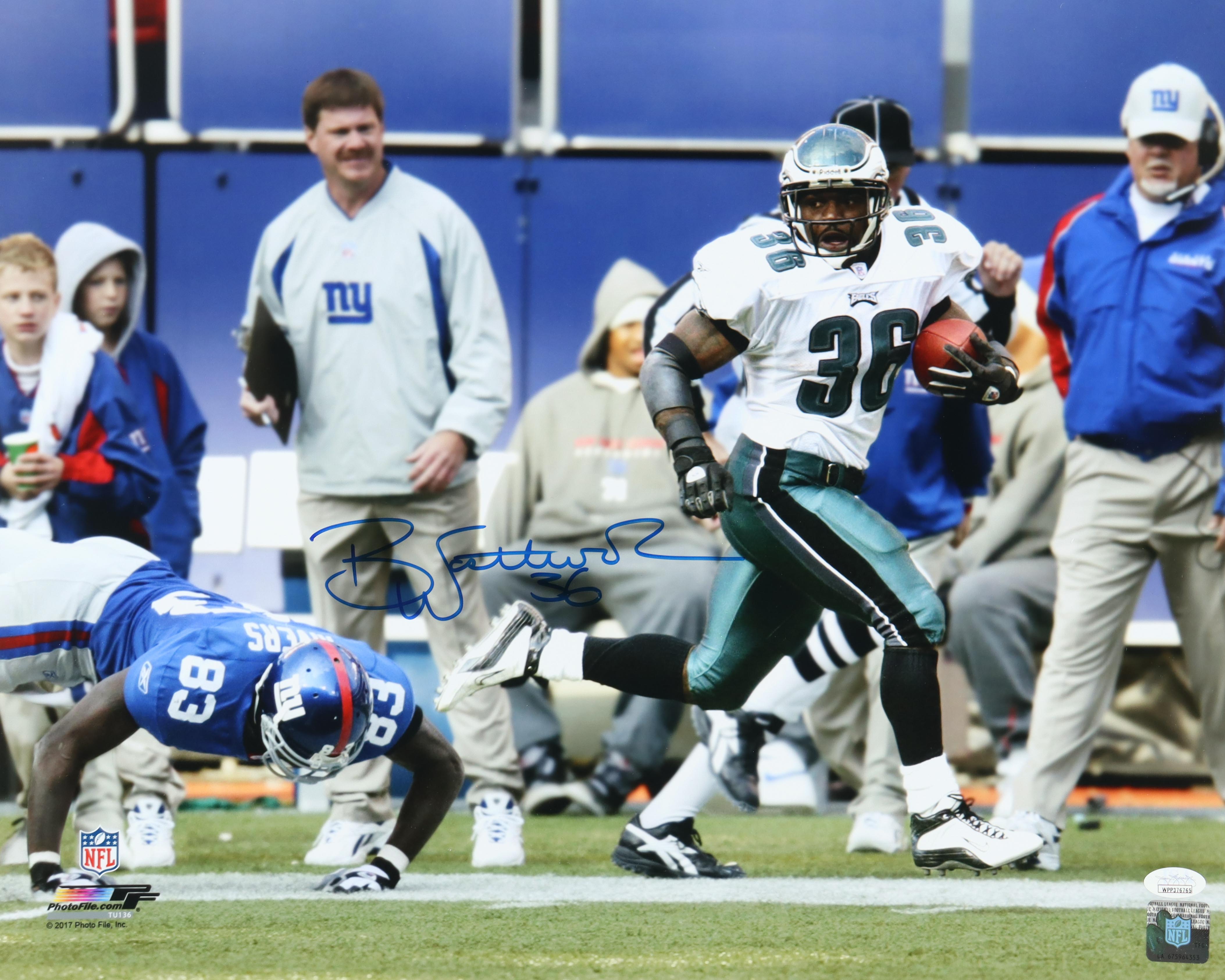 Photo measures 16" x 20" in size. Hand-signed by Brian Westbrook (Philadelphia Eagles).