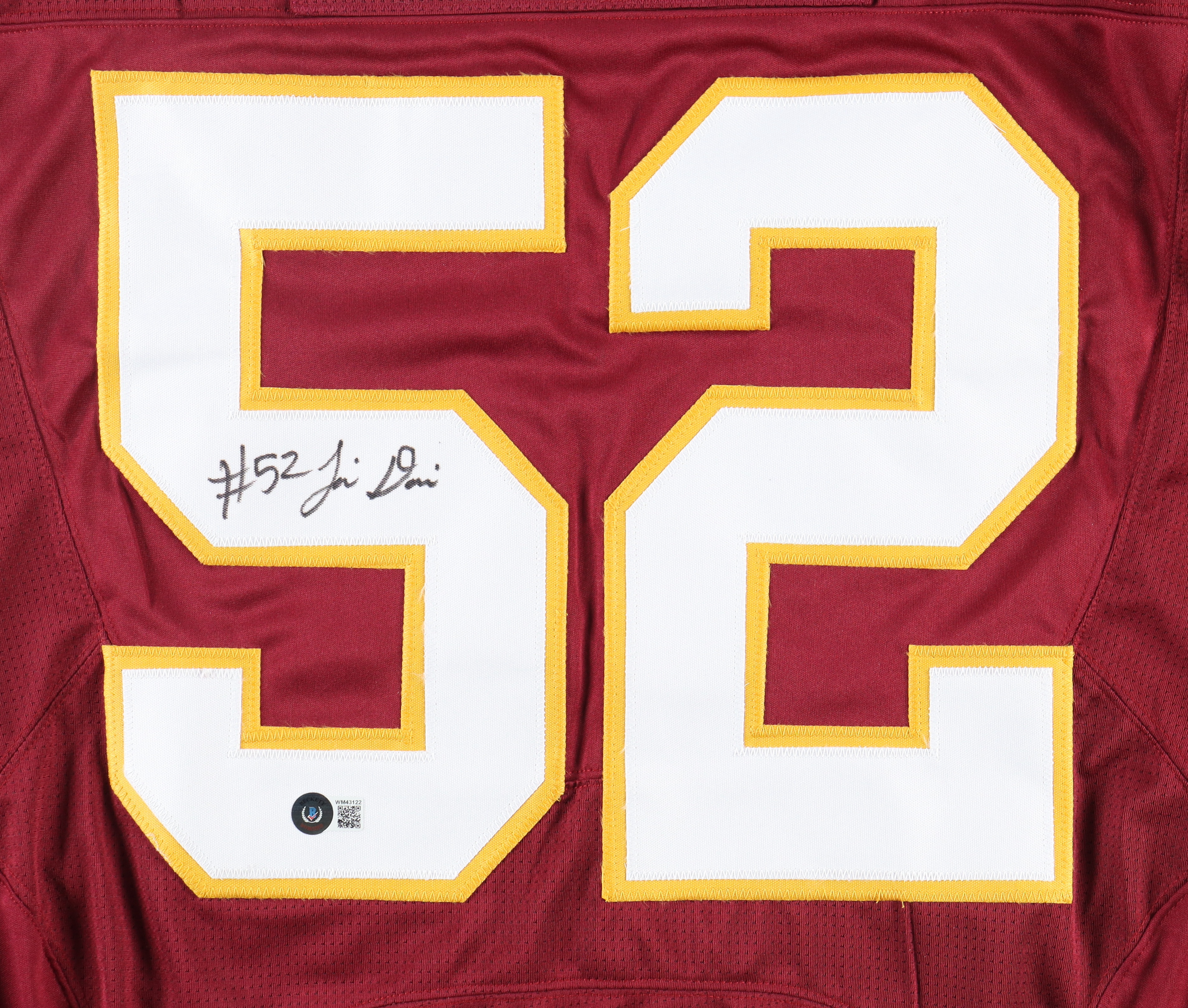 Custom jersey. Everything is sewn on, size XL. Hand-signed by Jamin Davis.