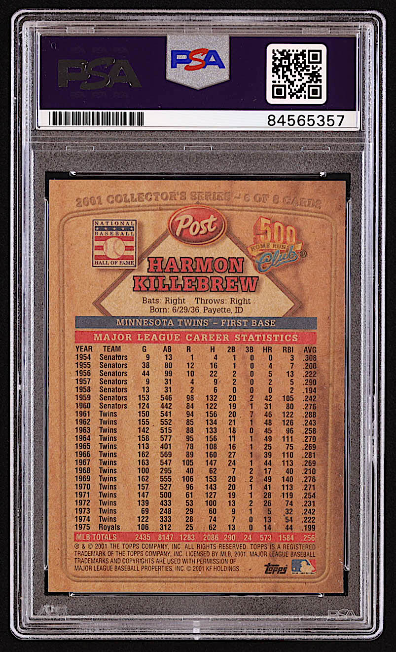 Harmon Killebrew Signed 2001 Post 500 Club #6 (PSA)