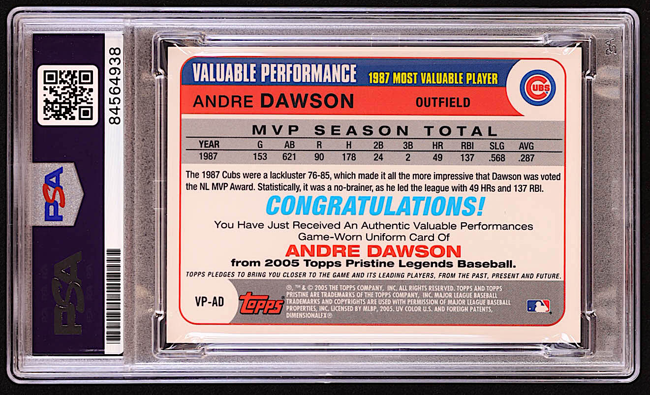 Andre Dawson Signed 2005 Topps Pristine Legends Valuable Performance Relics #AD / Uni C (PSA)
