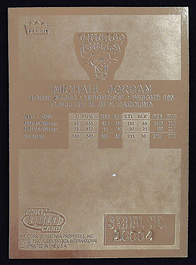Michael Jordan 1997 Fleer Premier Red Holo Refractor 23Kt Gold Card #10804