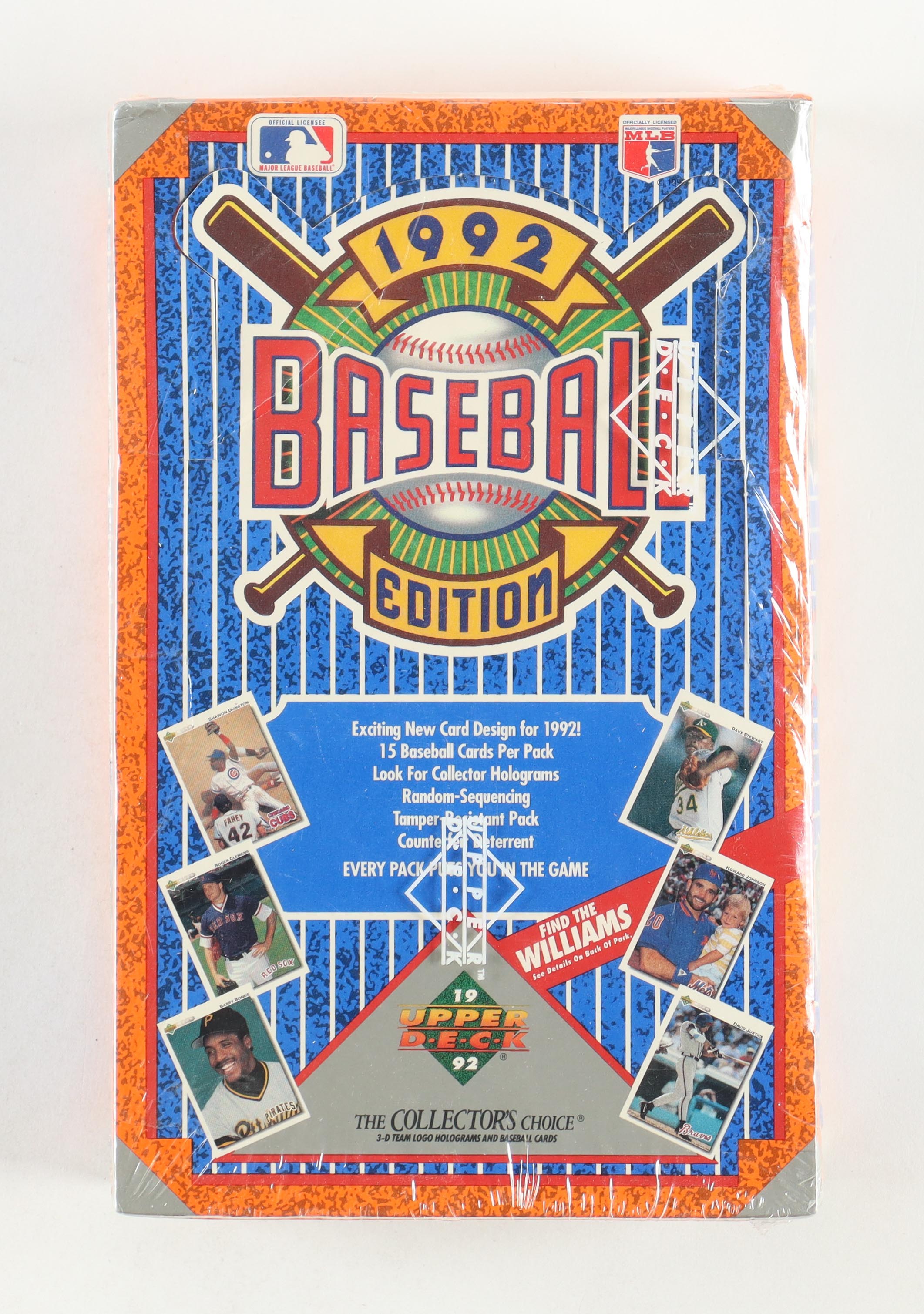 The 1992 Upper Deck set contains 800 standard-size cards issued in two separate series of 700 and 100 cards respectively. Special subsets included in the set are Star Rookies (1-27), Team Checklists (29-40/86-99), with player portraits by Vernon Wells Sr.; Top Prospects (52-77); Bloodlines (79-85), Diamond Skills (640-650/711-721) and Diamond Debuts (771-780). Rookie Cards in the set include Shawn Green, Brian Jordan and Manny Ramirez. A standard-size Ted Williams hologram card was randomly inserted into low series packs.