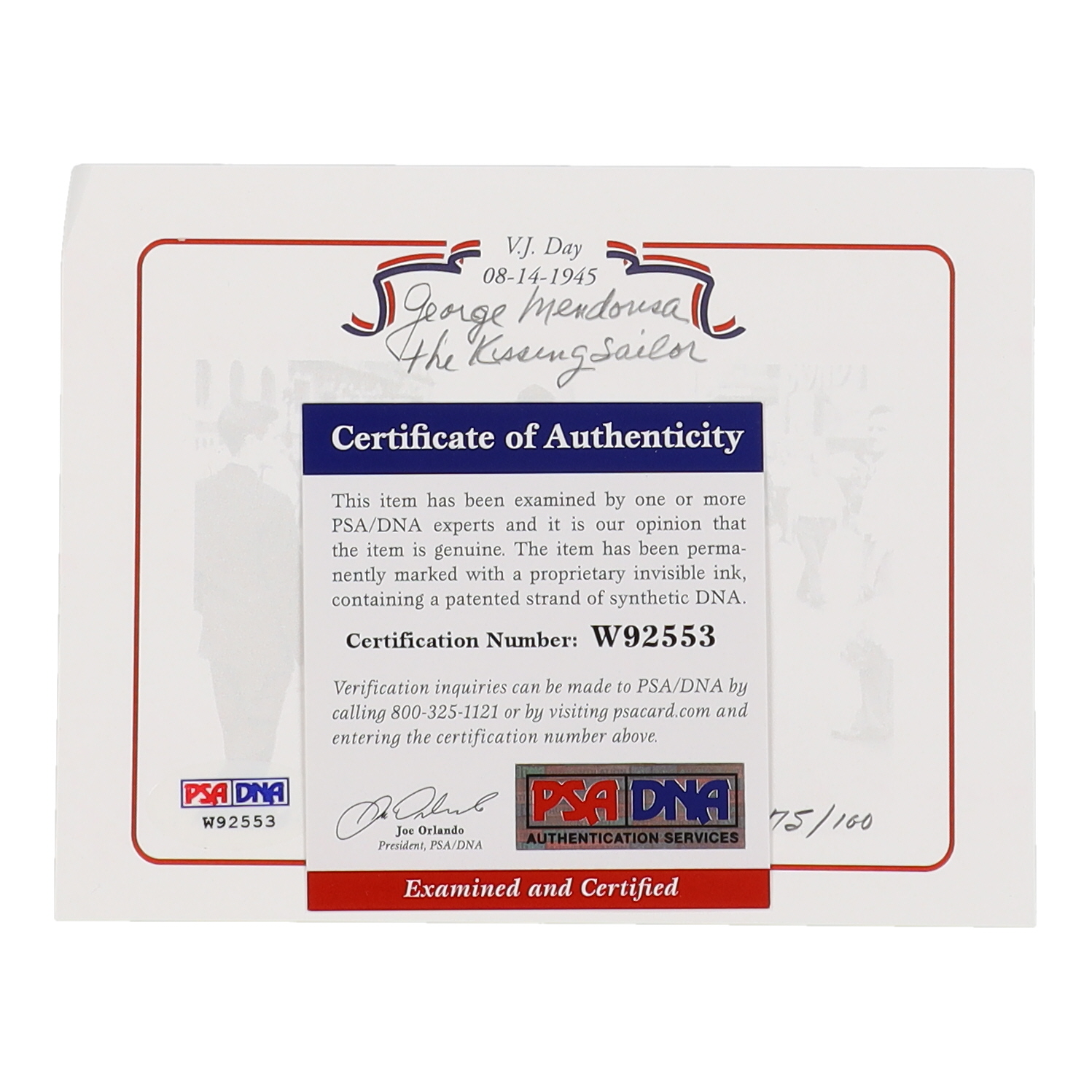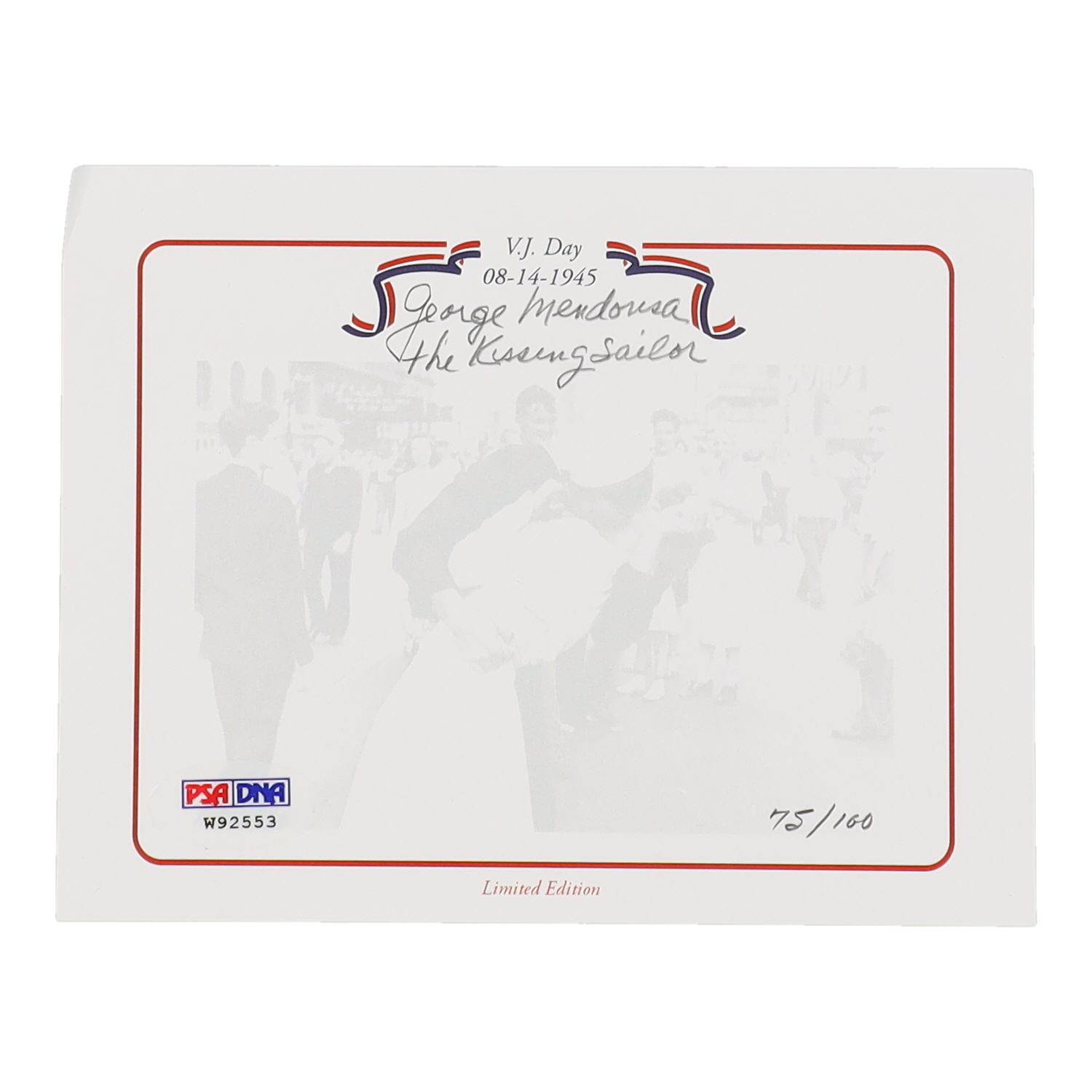 George Mendonsa Signed LE "V.J. Day" Index Card Inscribed "The Kissing Sailor" (PSA)