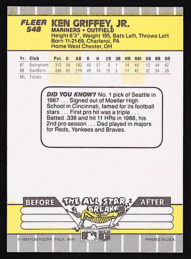 Ken Griffey Jr. 1989 Fleer #548 RC