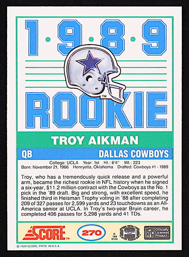 Troy Aikman 1989 Score #270 RC