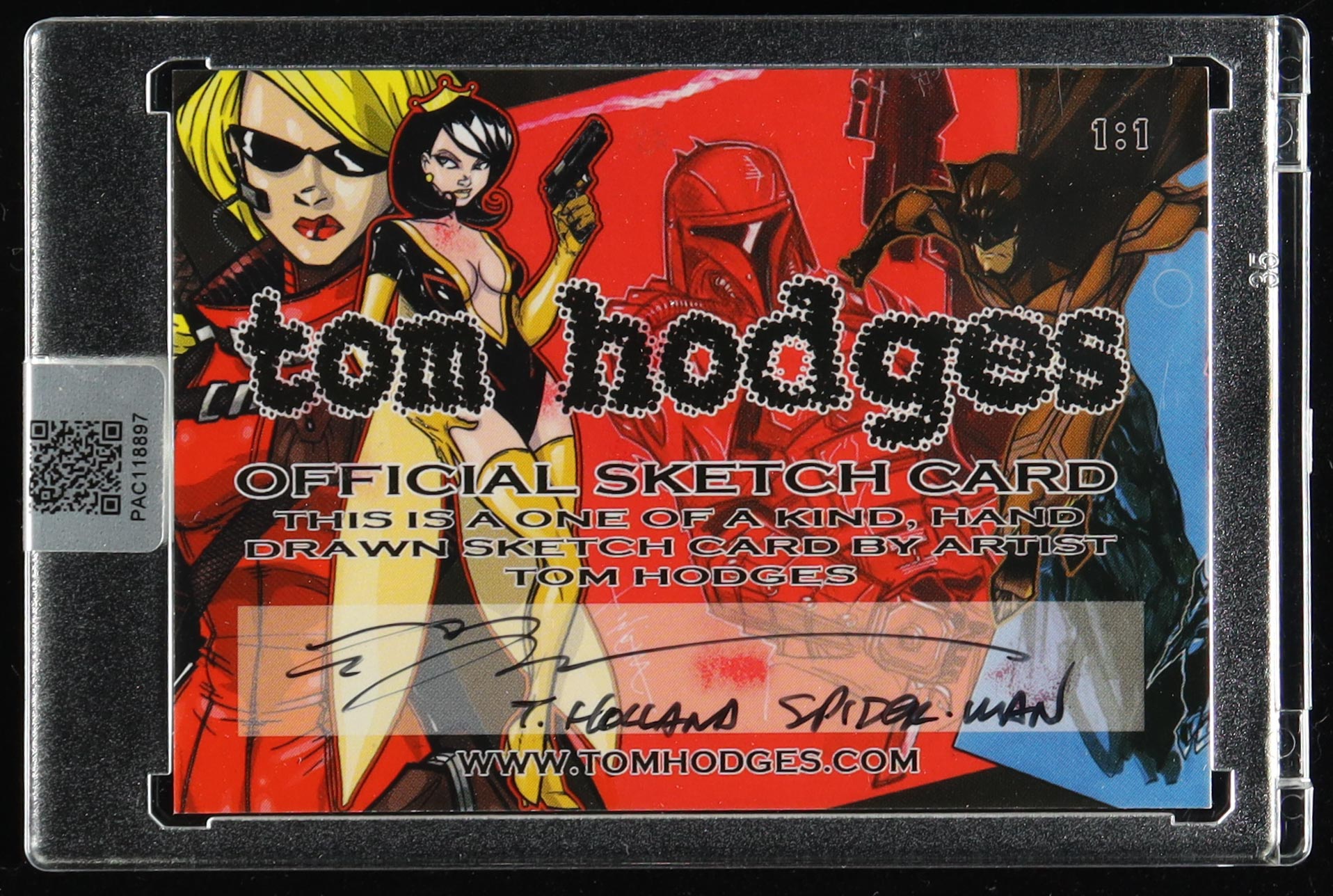 This original sketch card includes original art by renowned comic book artist, Tom Hodges. Also includes a character name inscription on the back by the artist.