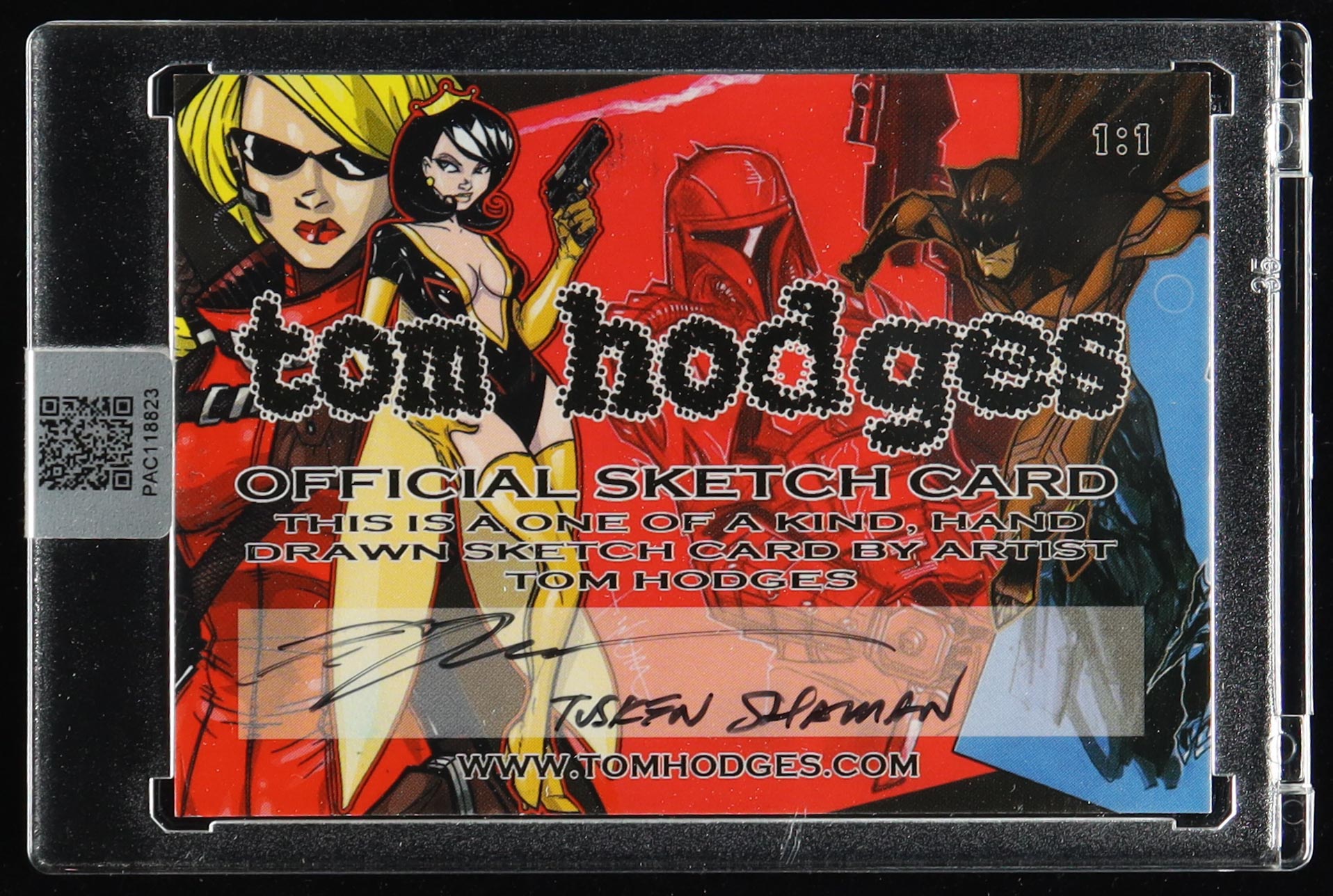 This original sketch card includes original art by renowned comic book artist, Tom Hodges. Also includes a character name inscription on the back by the artist.