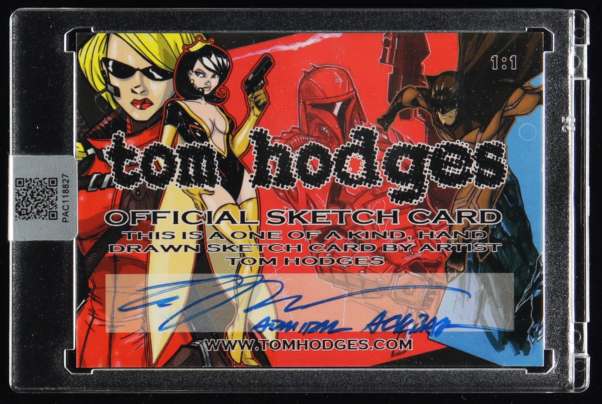 This original sketch card includes original art by renowned comic book artist, Tom Hodges. Also includes a character name inscription on the back by the artist.