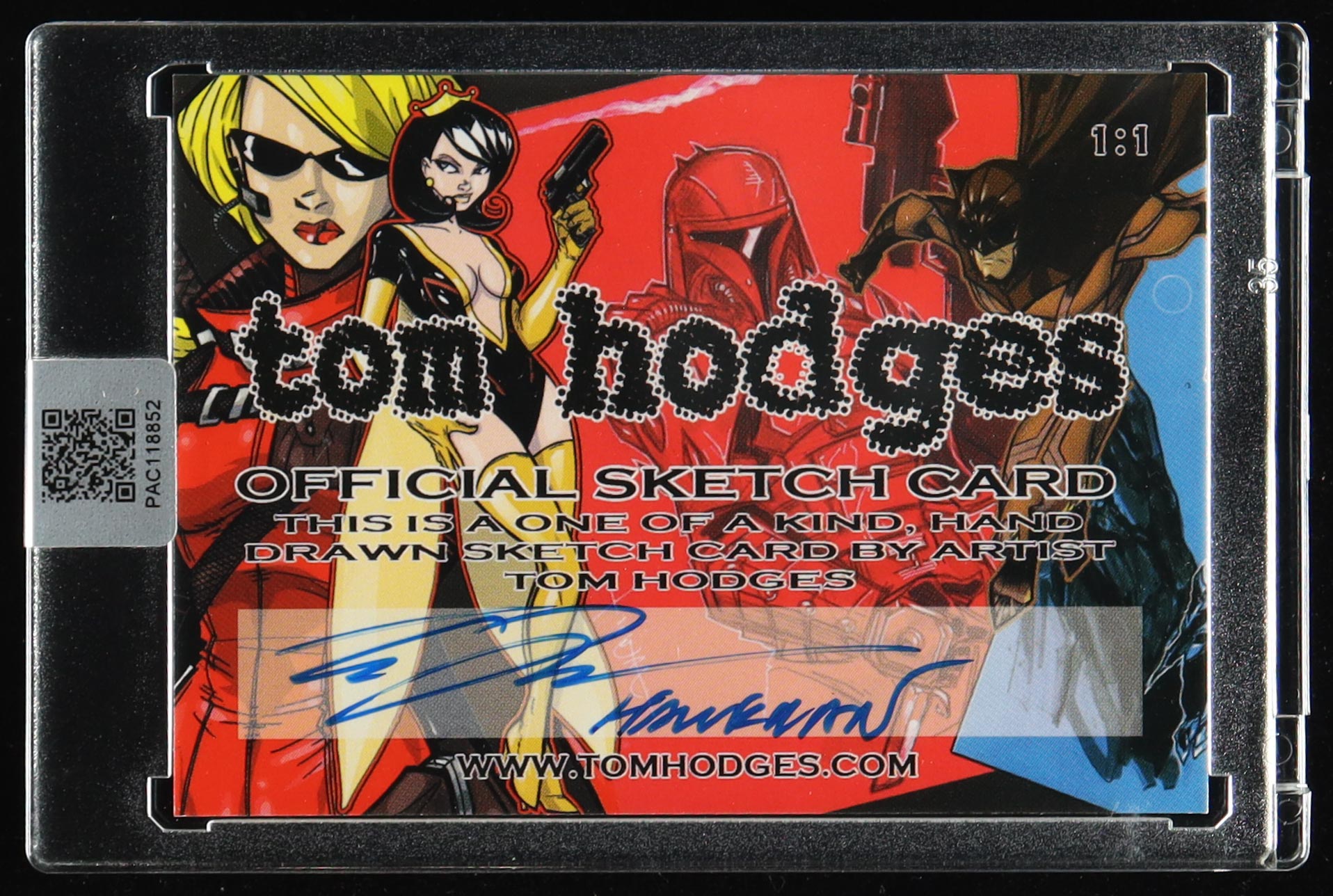 This original sketch card includes original art by renowned comic book artist, Tom Hodges. Also includes a character name inscription on the back by the artist.