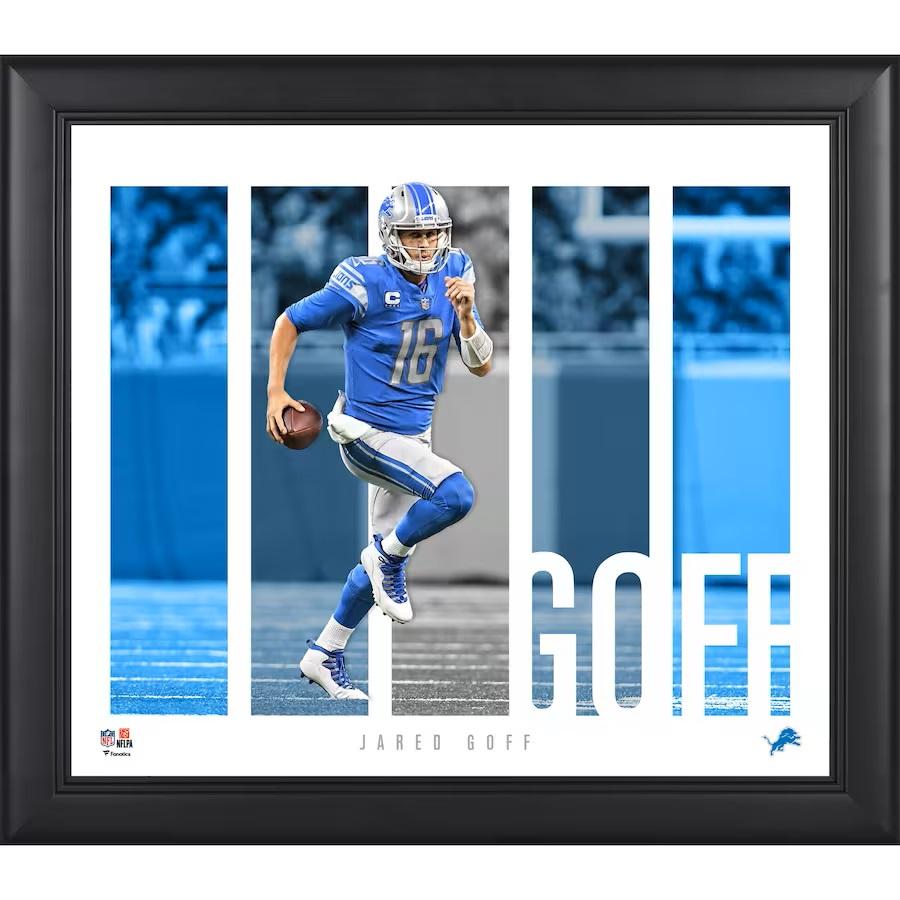Custom frame measures 15" x 17" and features a picture of Jared Goff (Detroit Lions).