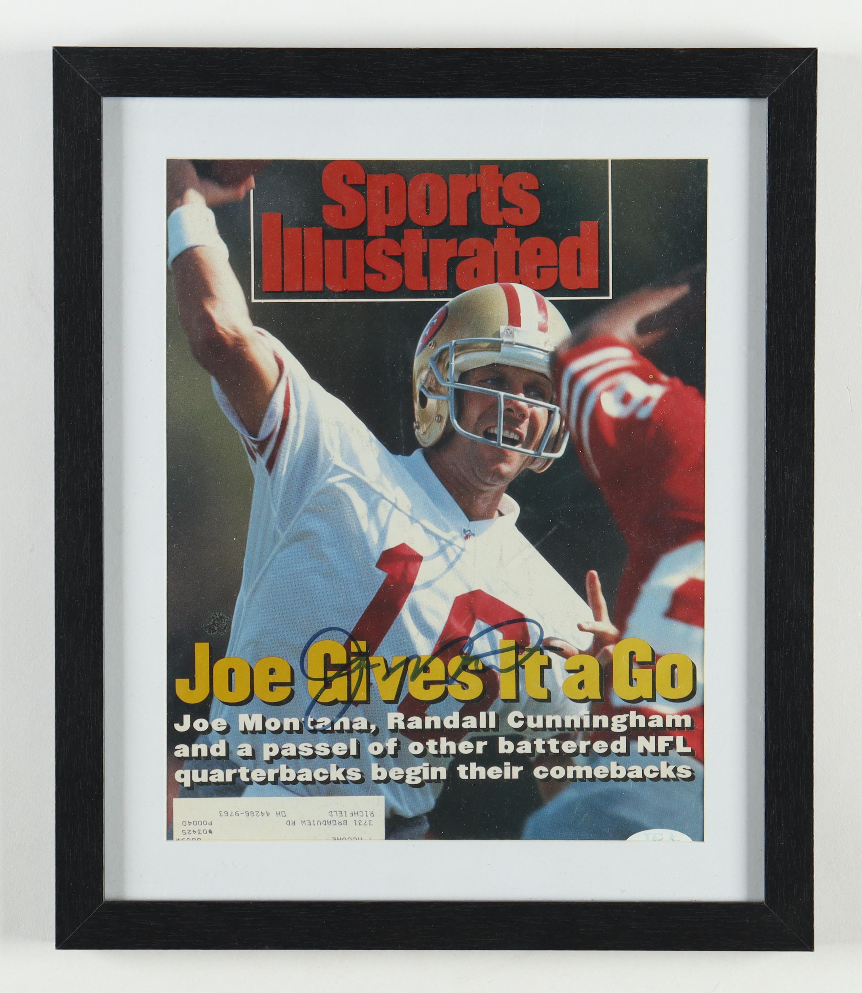 Custom frame measures 11" x 13" in size and features an July 27, 1992 issue of "Sports Illustrated" magazine that has been hand-signed by Joe Montana (San Francisco 49ers, HOF).