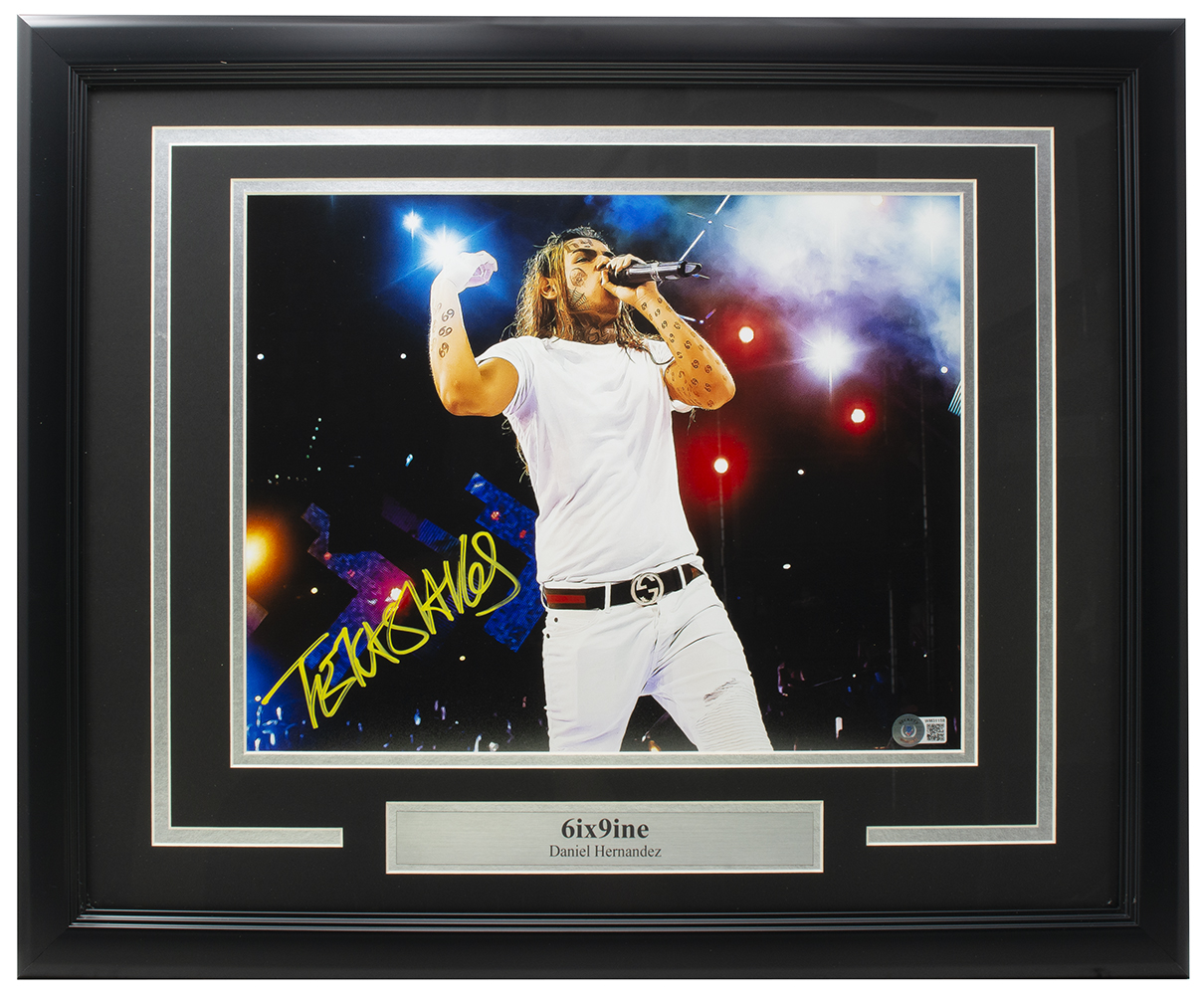 Custom frame measures 16" x 20" in size and features a photo that has been hand-signed by Tekashi 6ix9ine.
