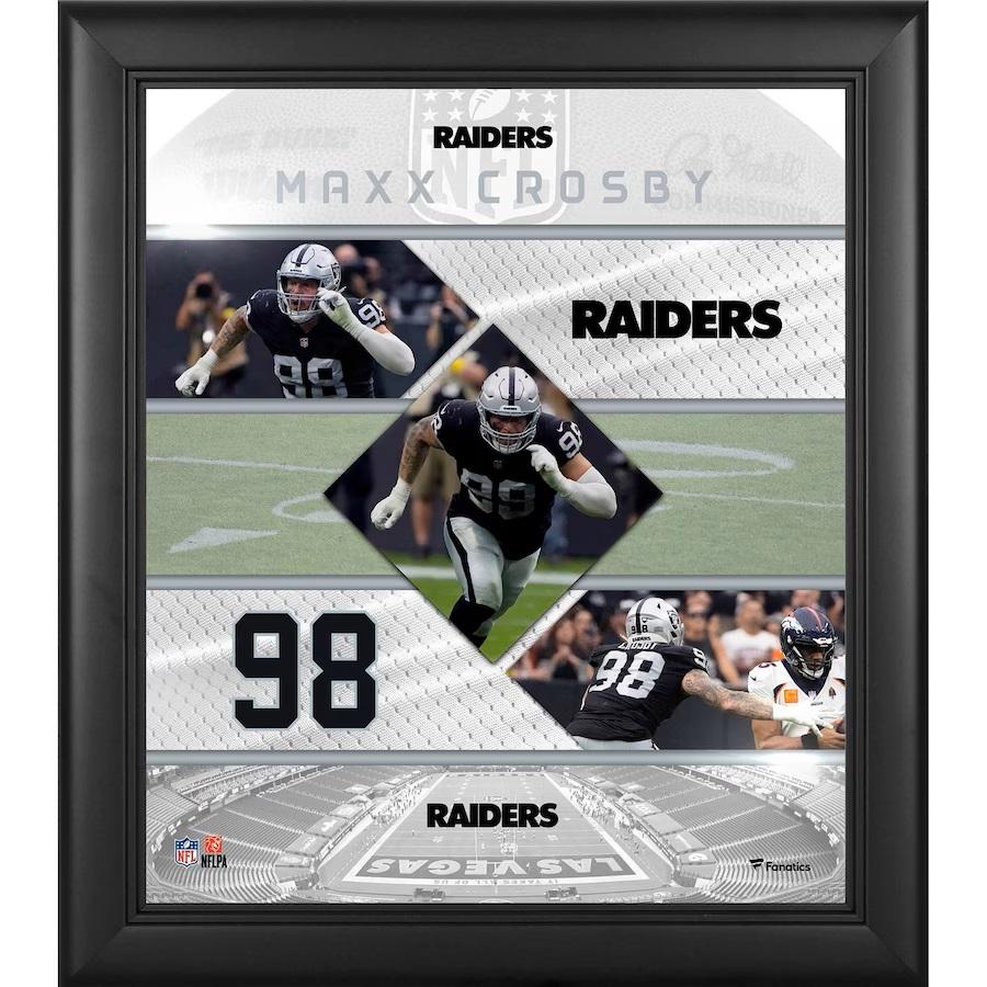 Custom frame measures 15" x 17" and features a photo of Maxx Crosby (Las Vegas Raiders).