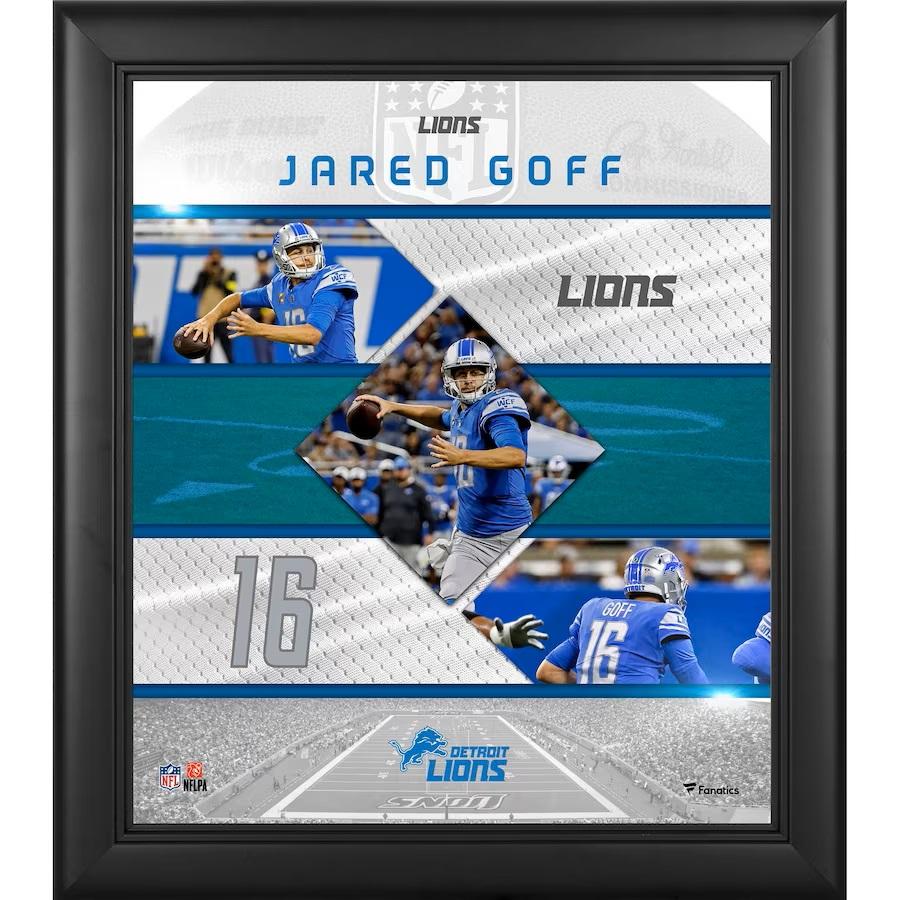Custom frame measures 15" x 17" and features a photo of Jared Goff (Detroit Lions).
