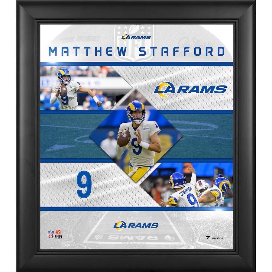 Custom frame measures 15" x 17" and features a photo of Matthew Stafford (Los Angeles Rams).