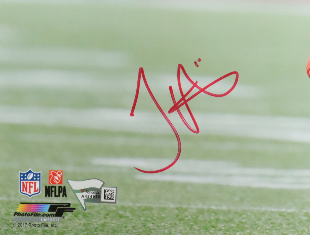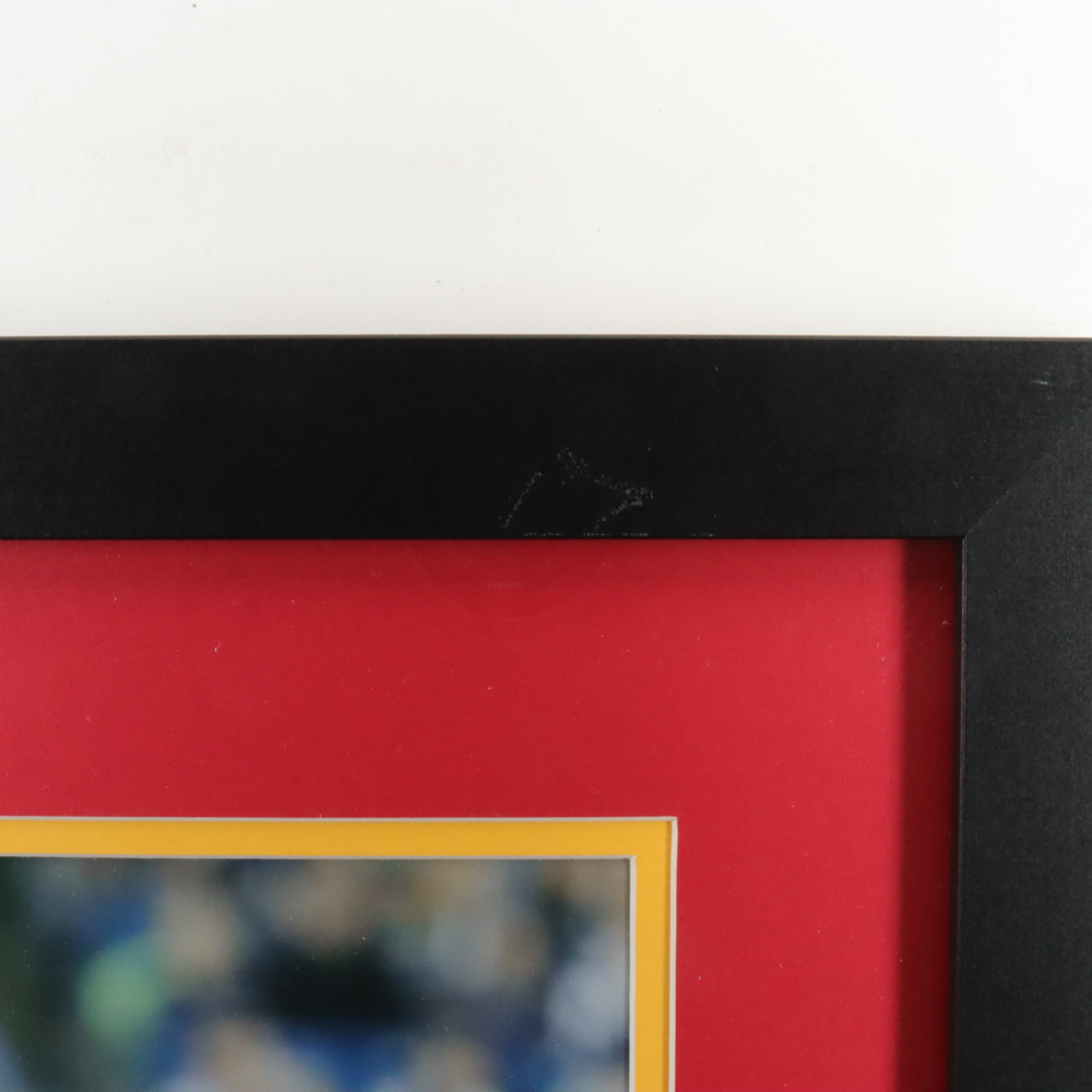 Custom frame measures approximately 17" x 20" in size and features a photo that has been hand-signed by Tyreek Hill (Kansas City Chiefs). Please note, there is scuffing on the frame borders.