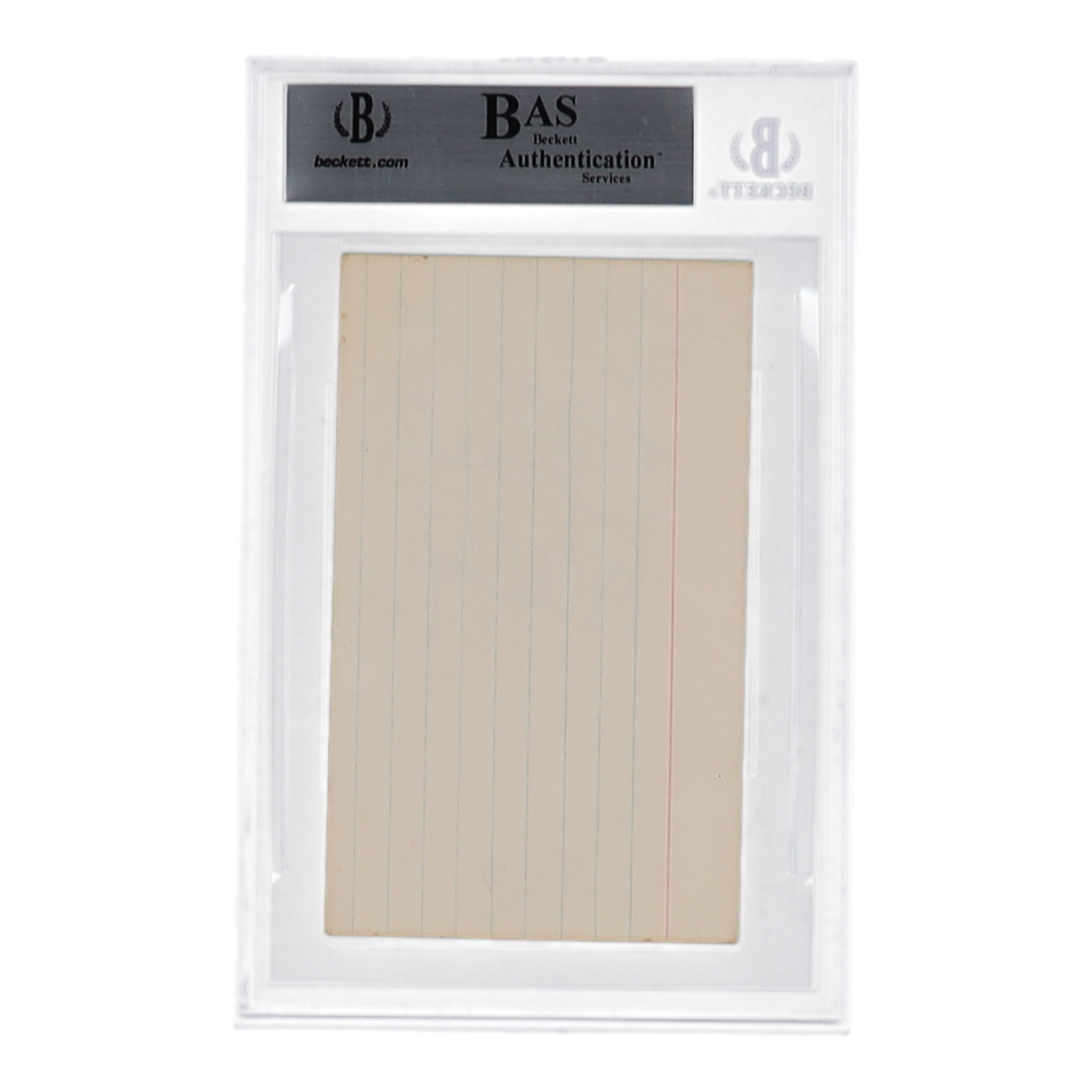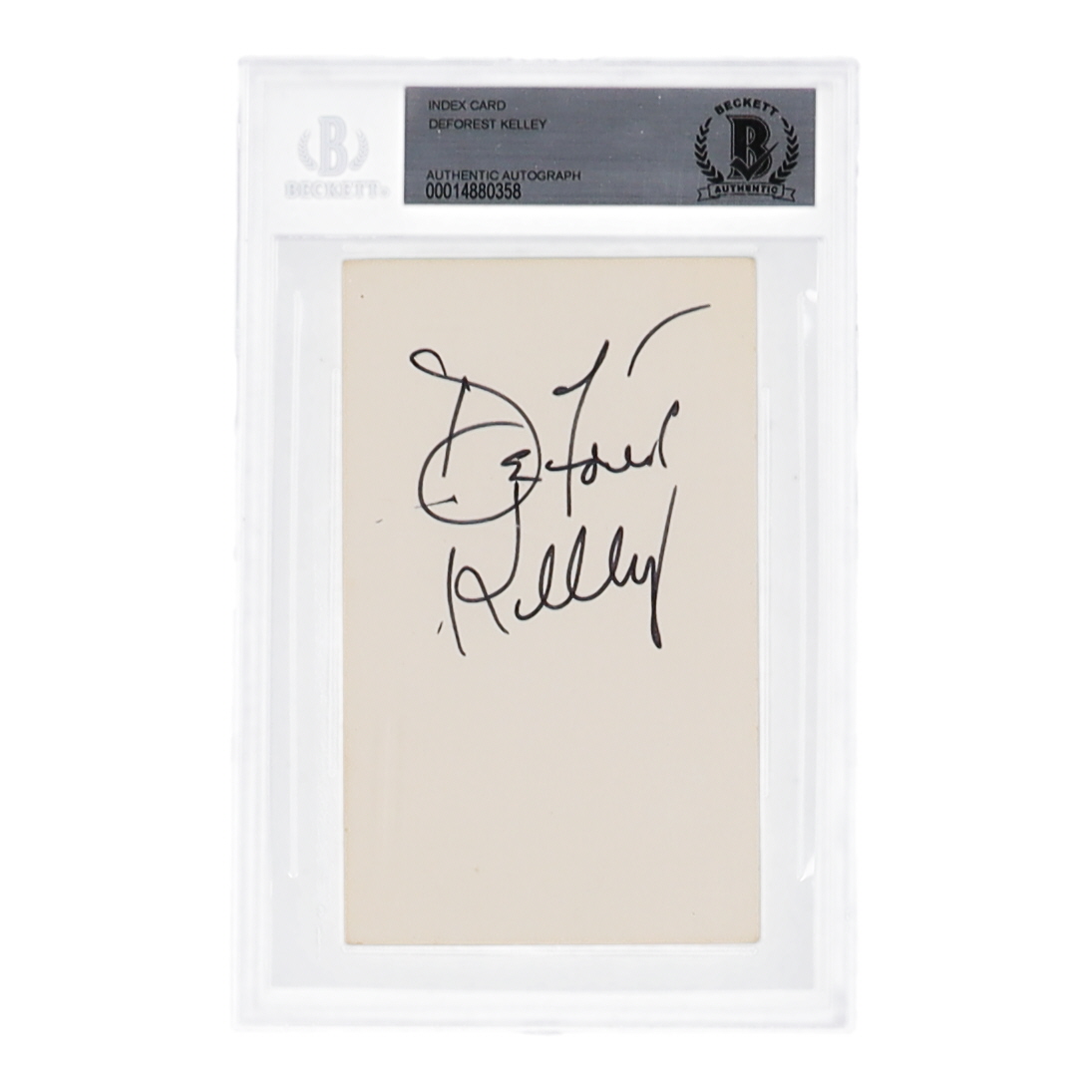 Index Card has been hand-signed by DeForest Kelley (D. 1999). Index Card has been encapsulated by BAS. Refer to photos for more details on the condition of the item.