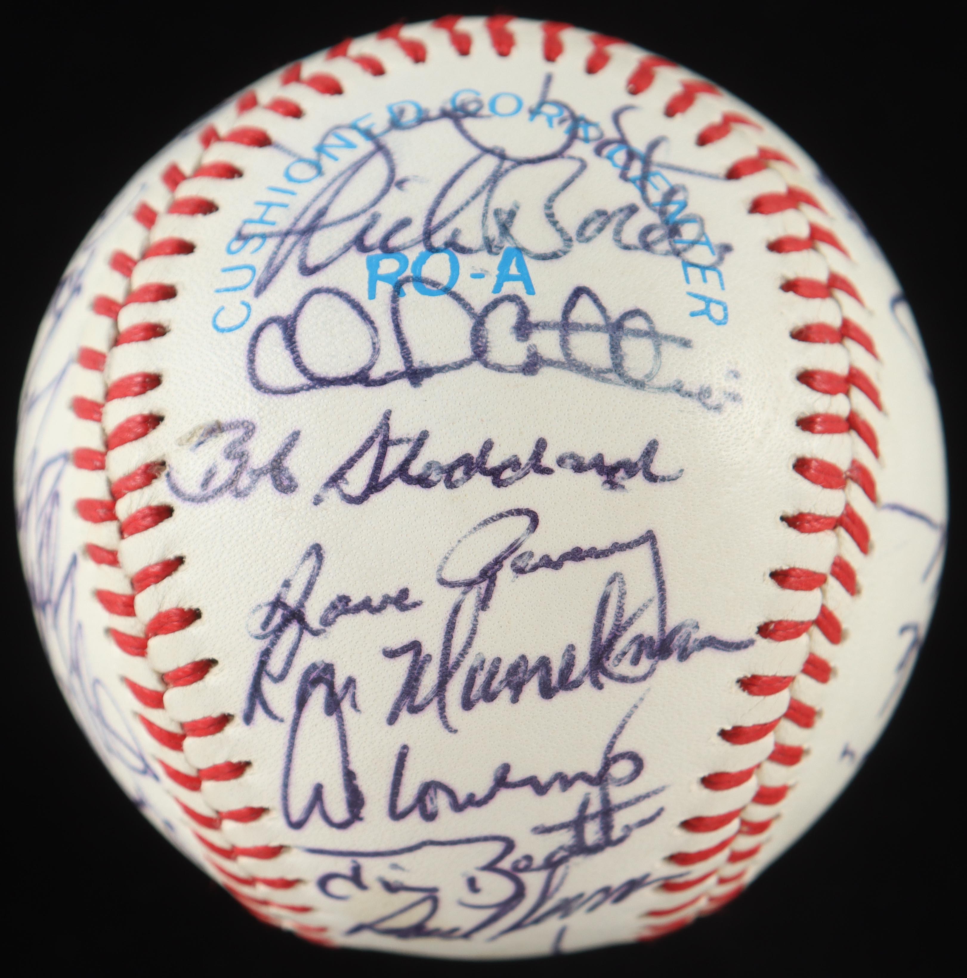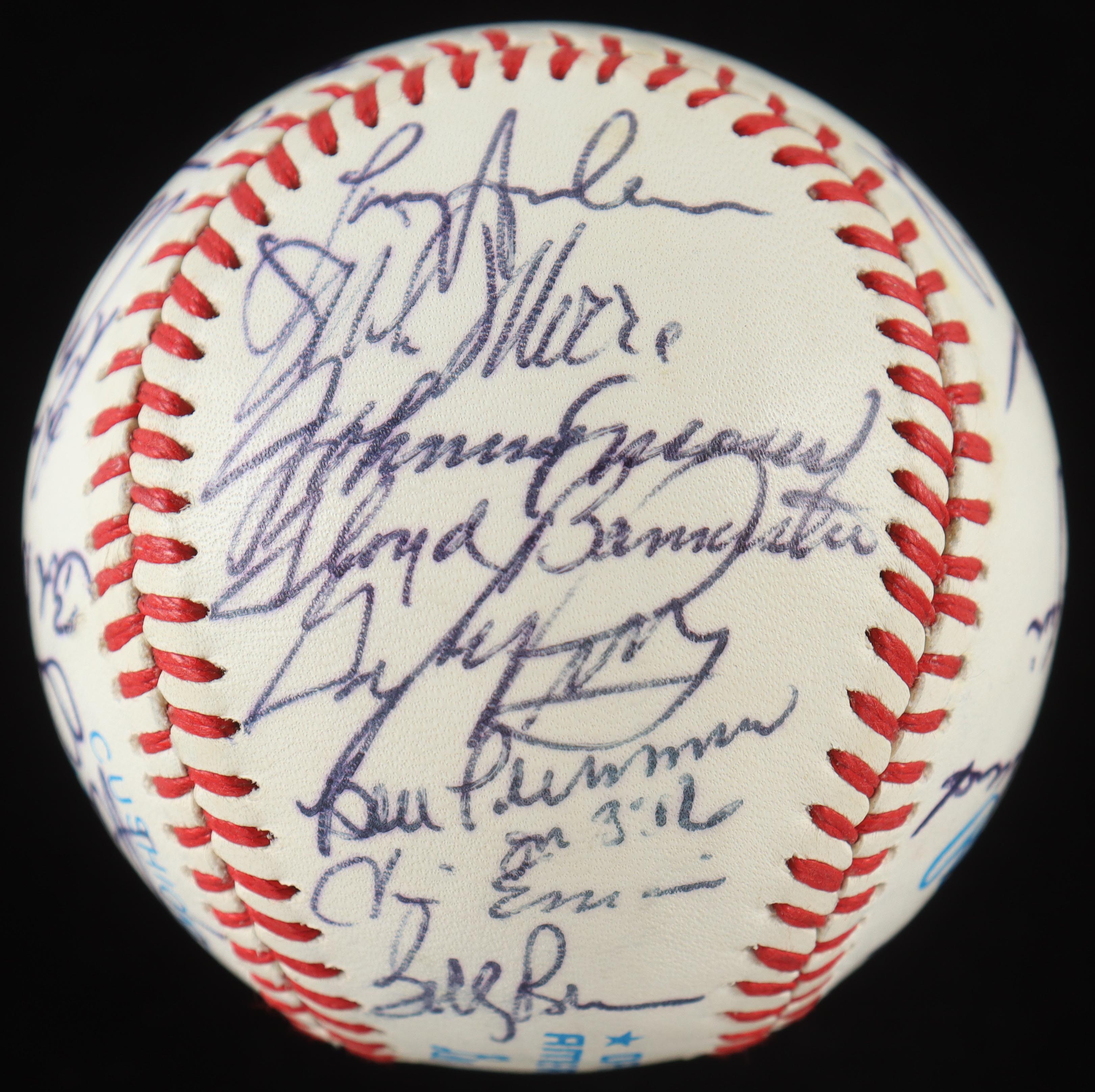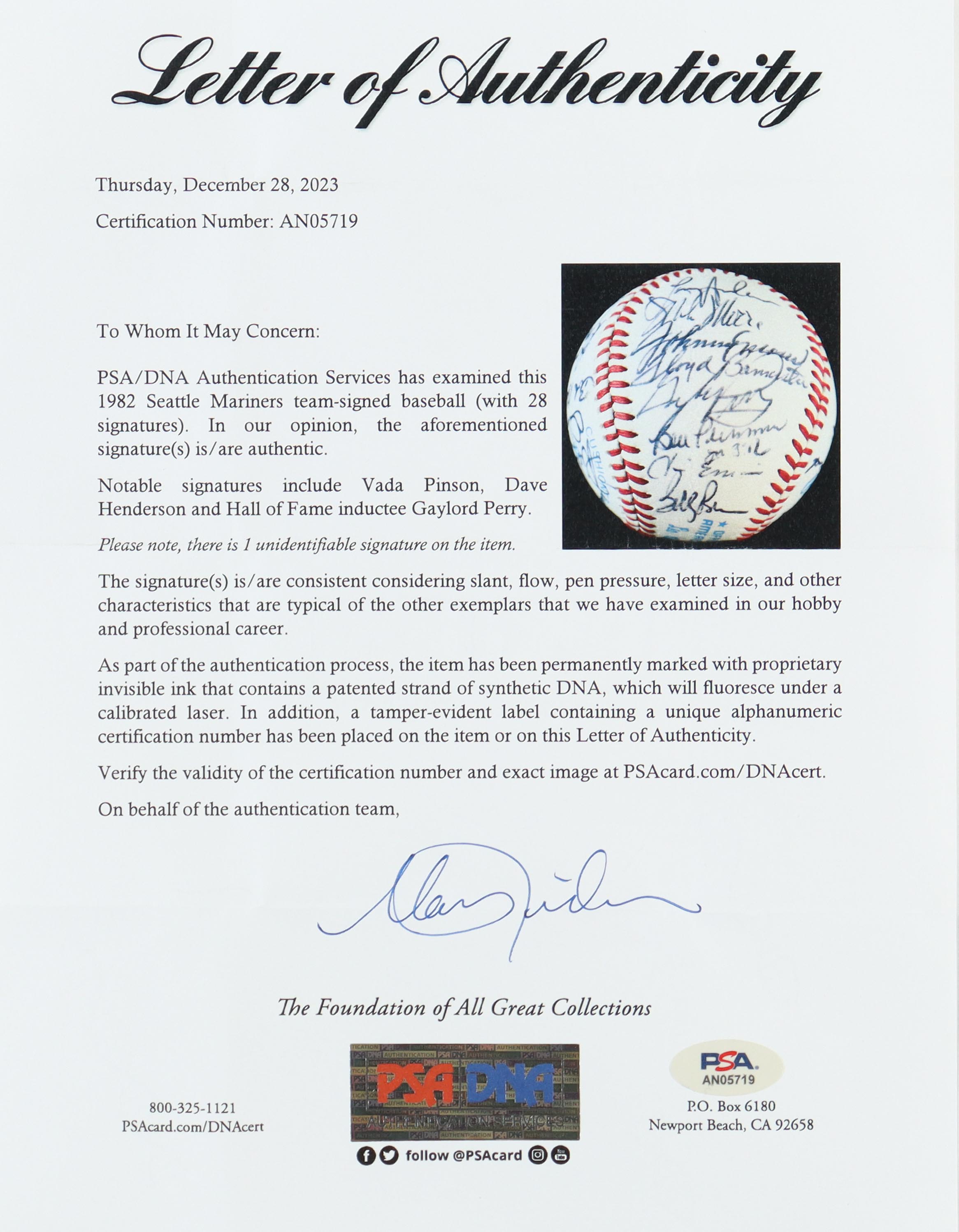 1982 Seattle Mariners OAL Baseball Team-Signed by (28) with Gaylord Perry, Vada Pinson, Larry Anderson, Dave Henderson & Wood Display Case (PSA)