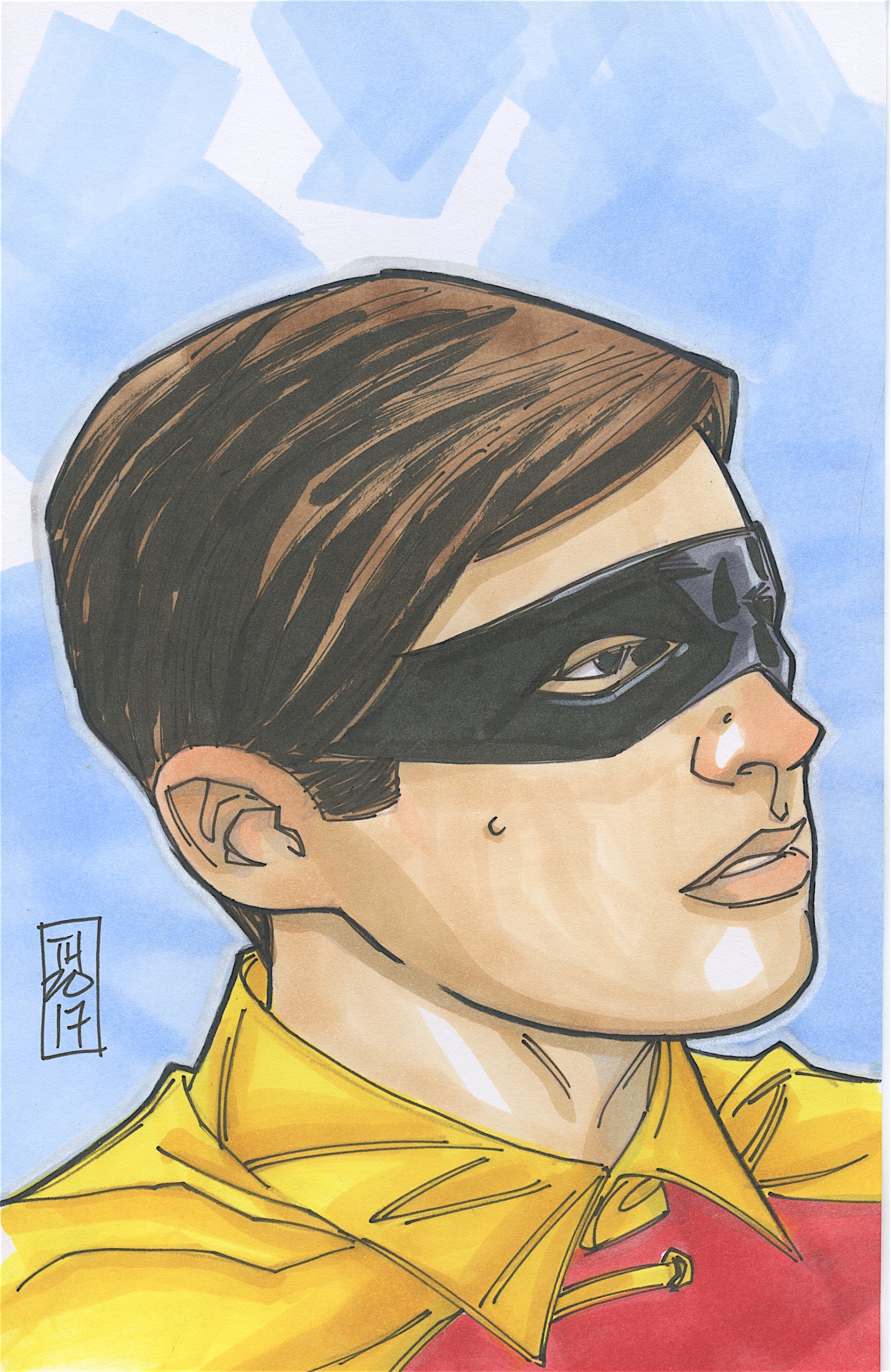 Robin (Burt Ward) "Batman" 1/1 ORIGINAL 5.5" x 8.5" Color Drawing - Hand-Drawn & Signed by Tom Hodges