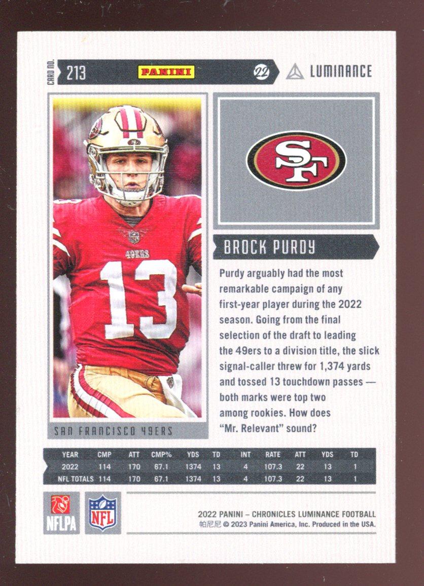 Brock Purdy 2022 Panini Chronicles Luminance Update Vertical Rookies #213 RC