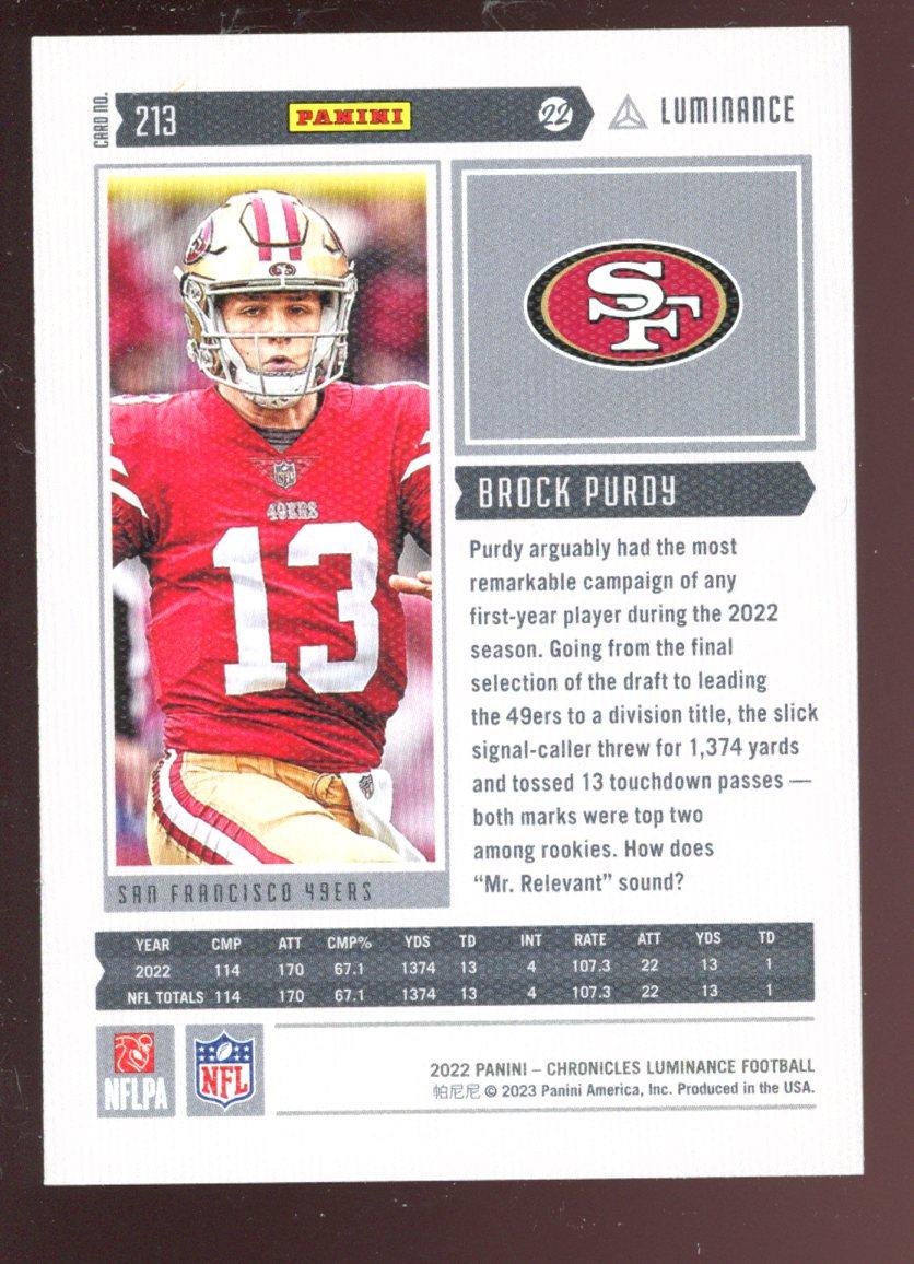 Brock Purdy 2022 Panini Chronicles Luminance Update Vertical Rookies #213 RC