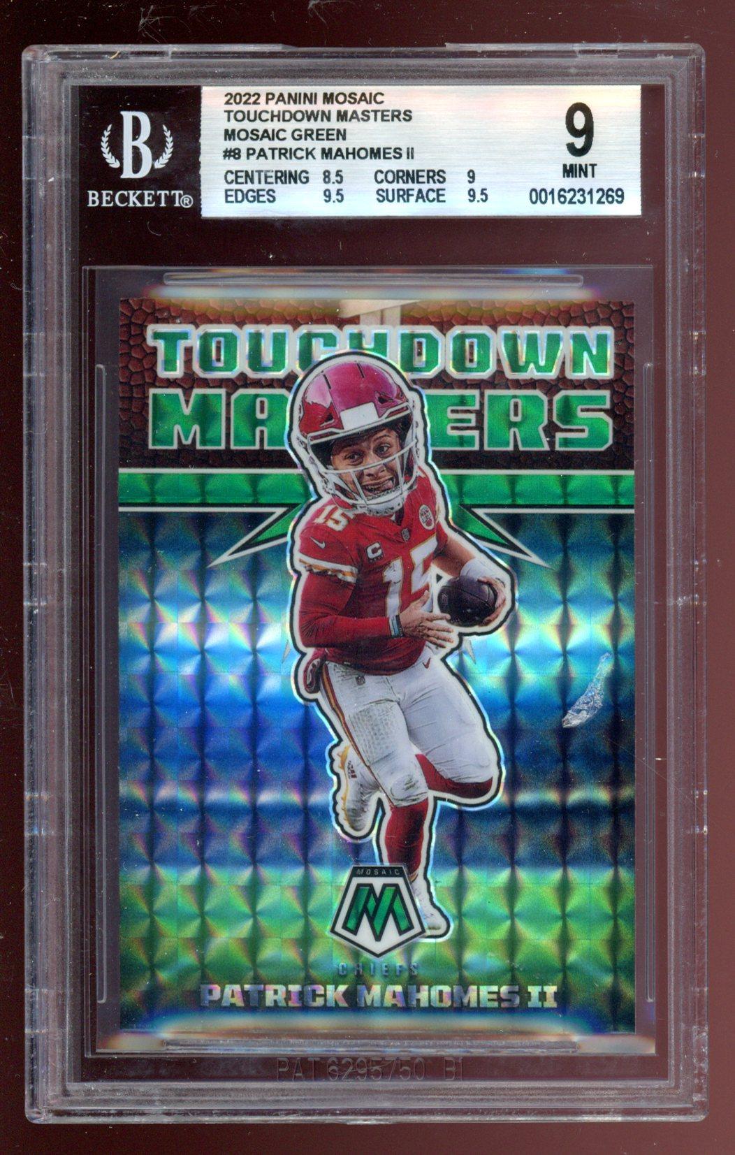 Patrick Mahomes II 2022 Panini Mosaic Touchdown Masters Mosaic Green #8 (BGS 9)