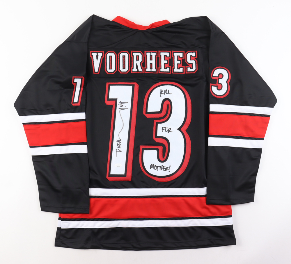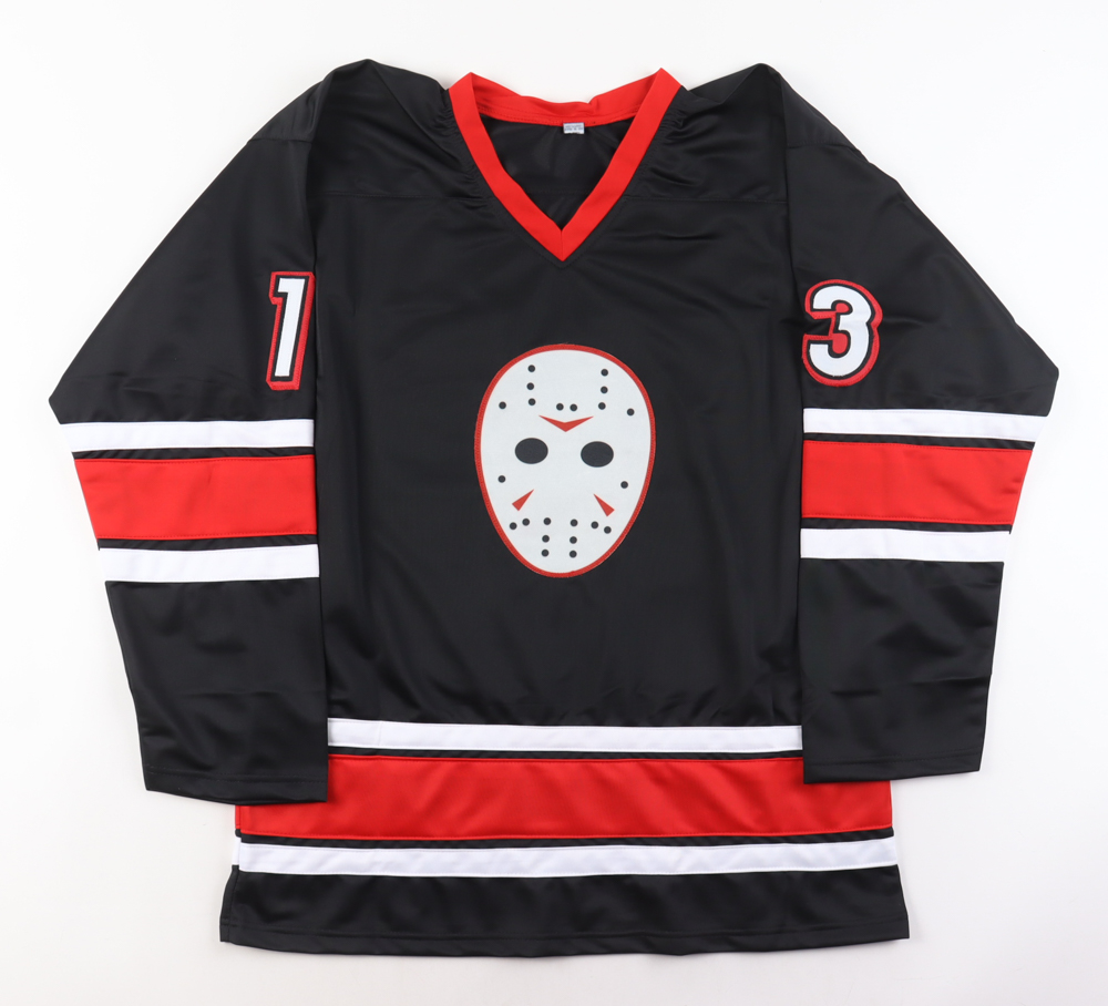 Custom jersey with everything sewn on, size XL. Hand-signed and inscribed by Ari Lehman (Jason Voorhees).