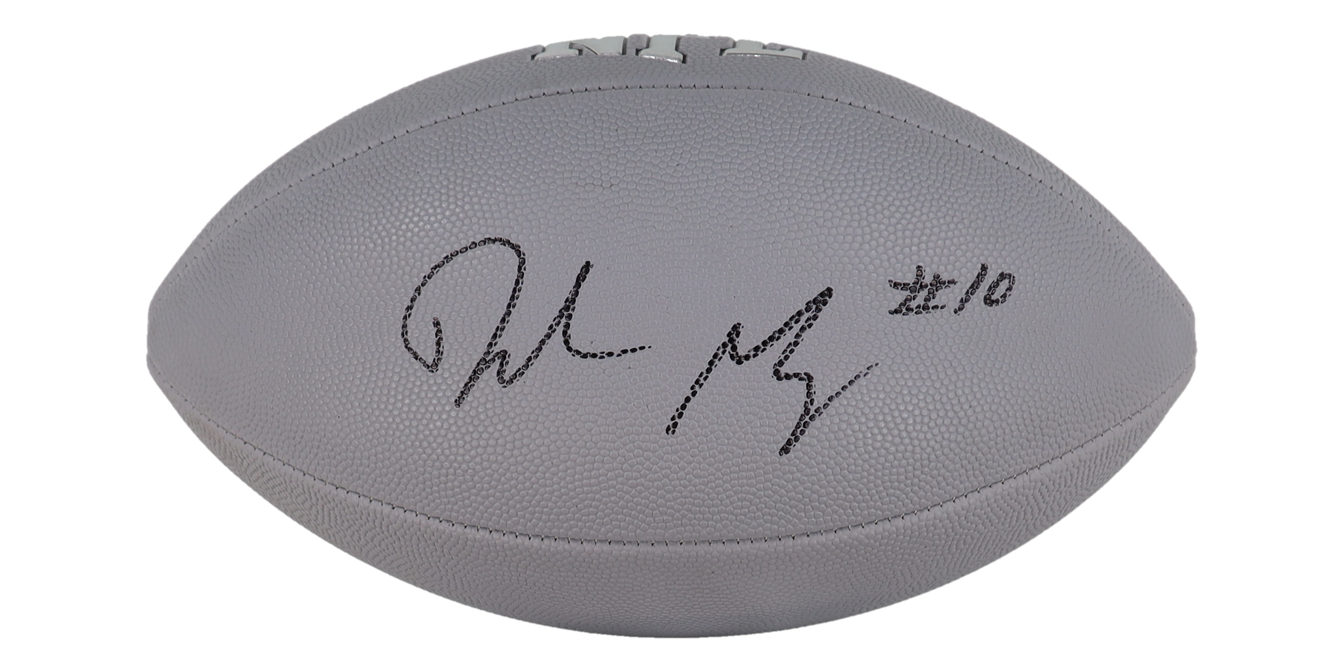 Wilson MVP NFL football has been hand-signed by Drake Maye (North Carolina Tar Heels).