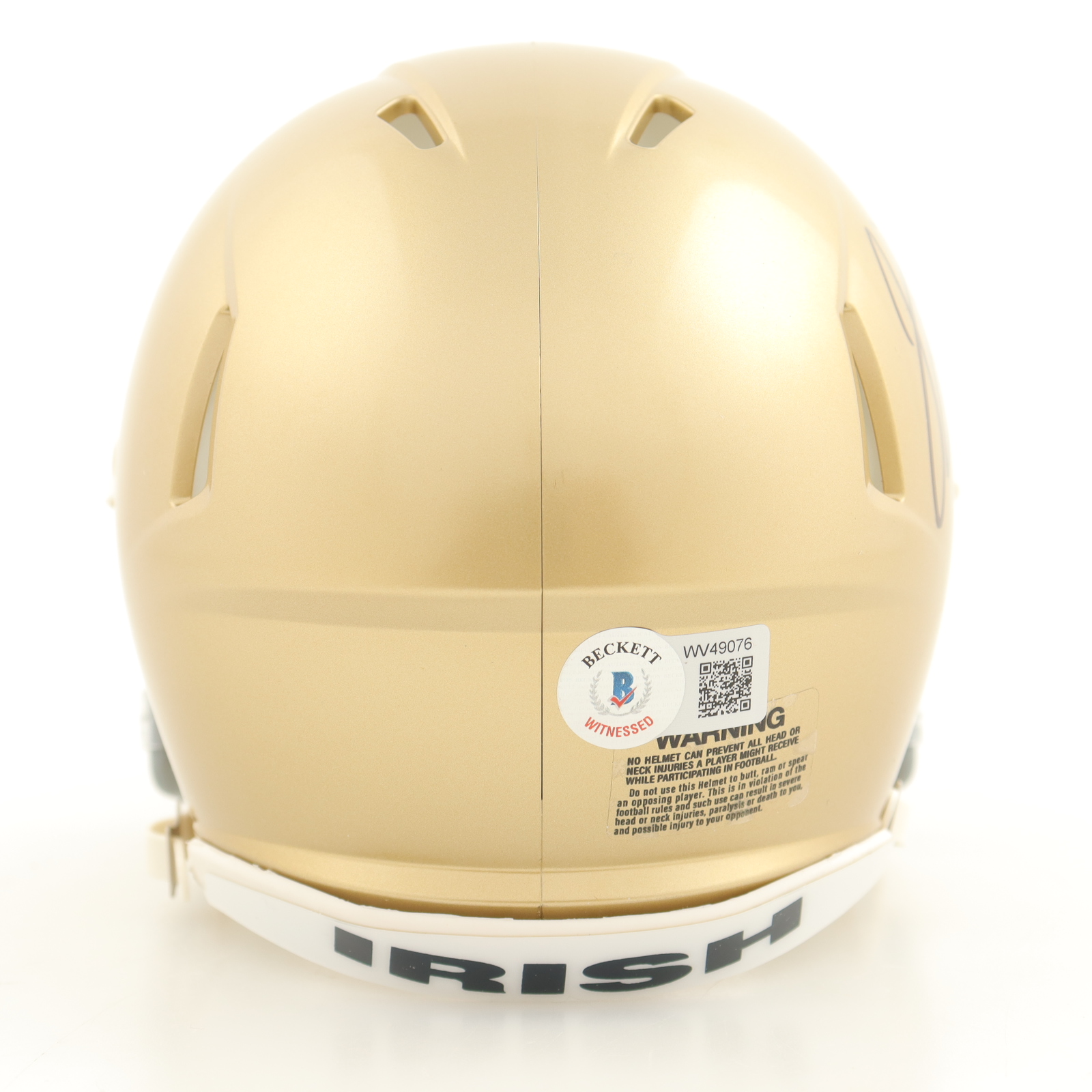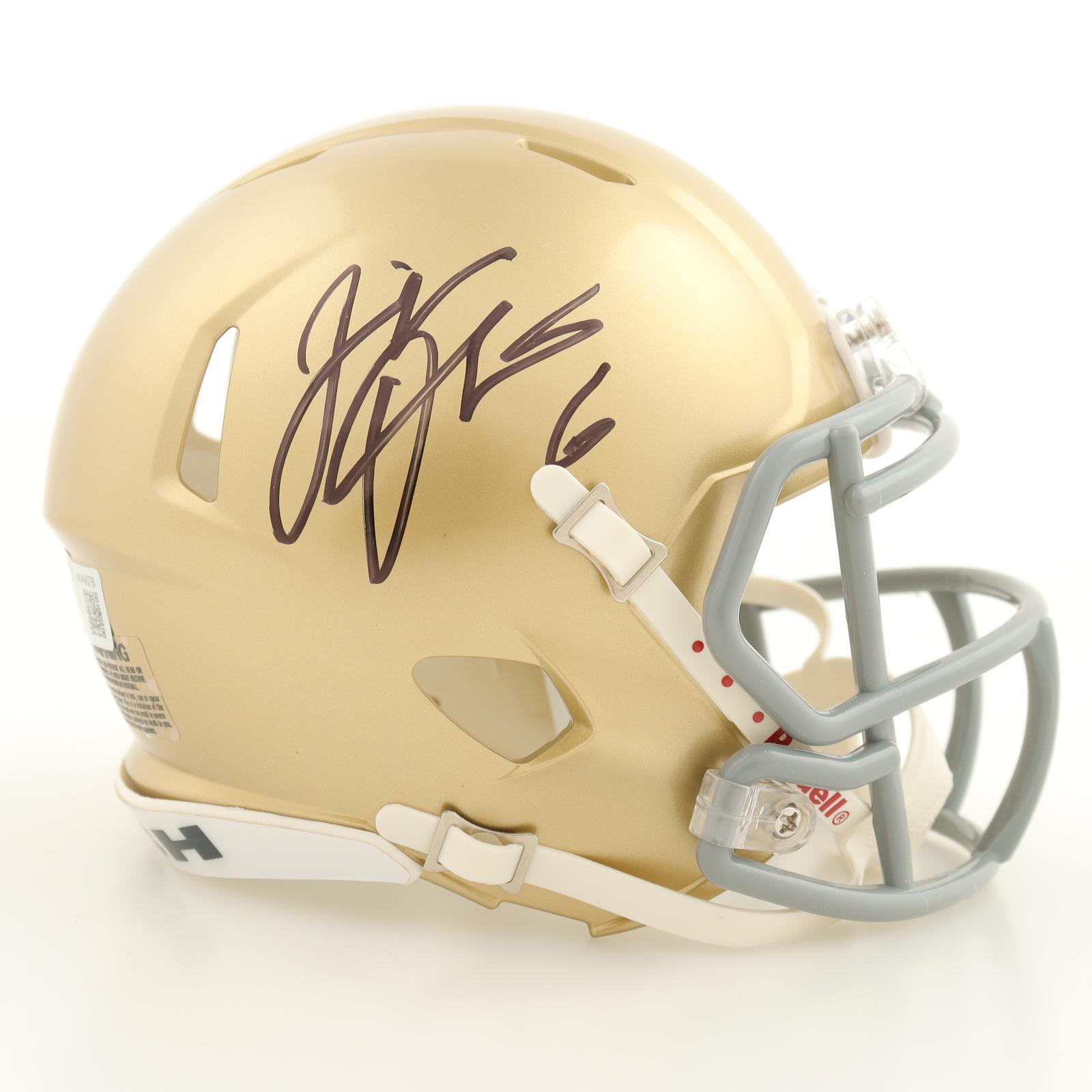 Riddell Notre Dame Fighting Irish mini helmet. Has been hand-signed by Jeremiah Owusu-Koramoah.
