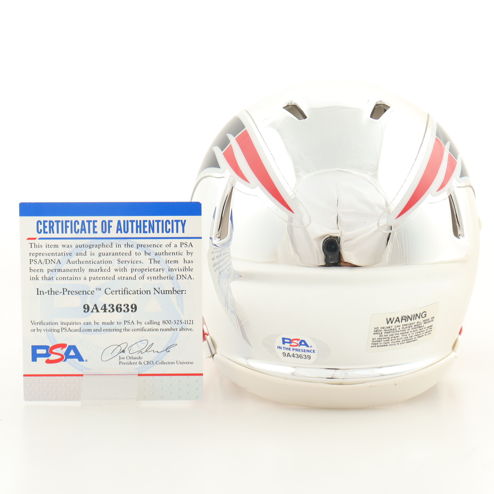 Riddell New England Patriots Chrome Alternate Speed Mini Helmet has been hand-signed by Corey Dillon.