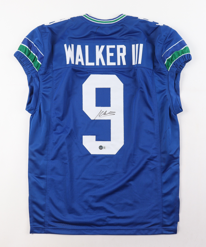 Custom jersey with everything sewn on, size XL. Hand-signed by Kenneth Walker III.