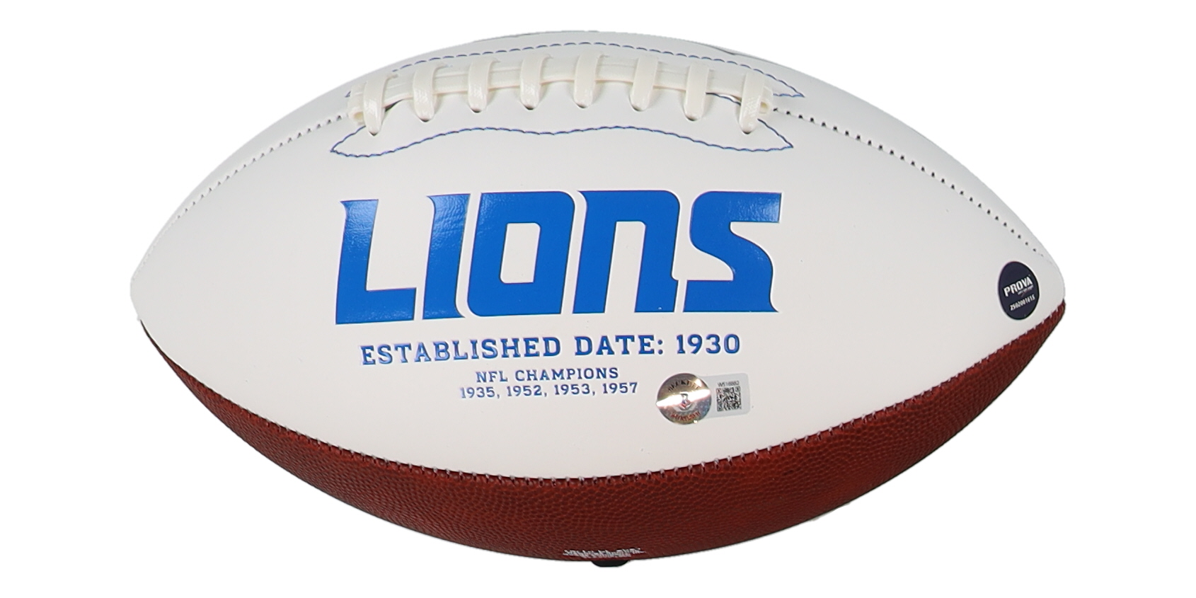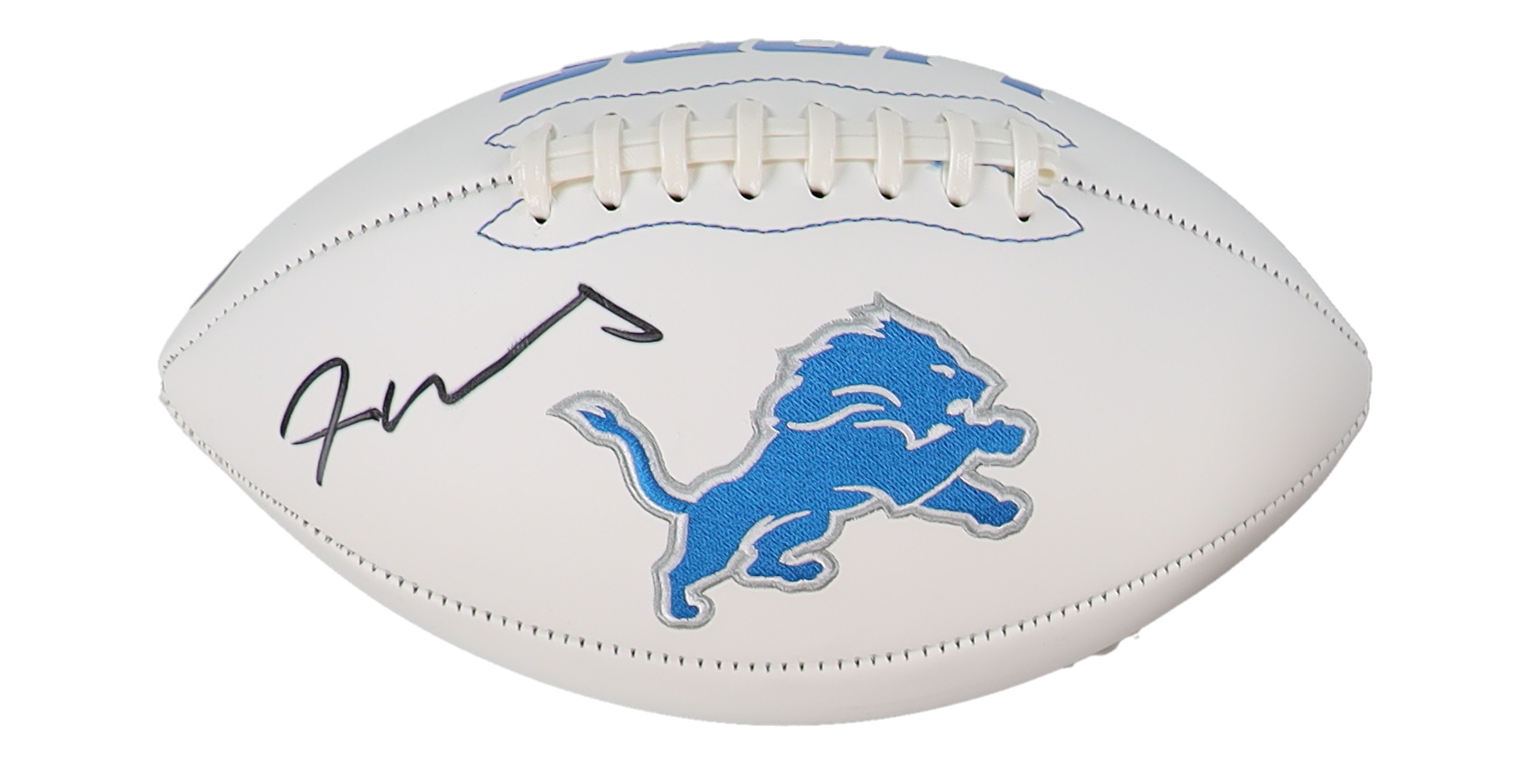 Detroit Lions logo football has been hand-signed by Jameson Williams.
