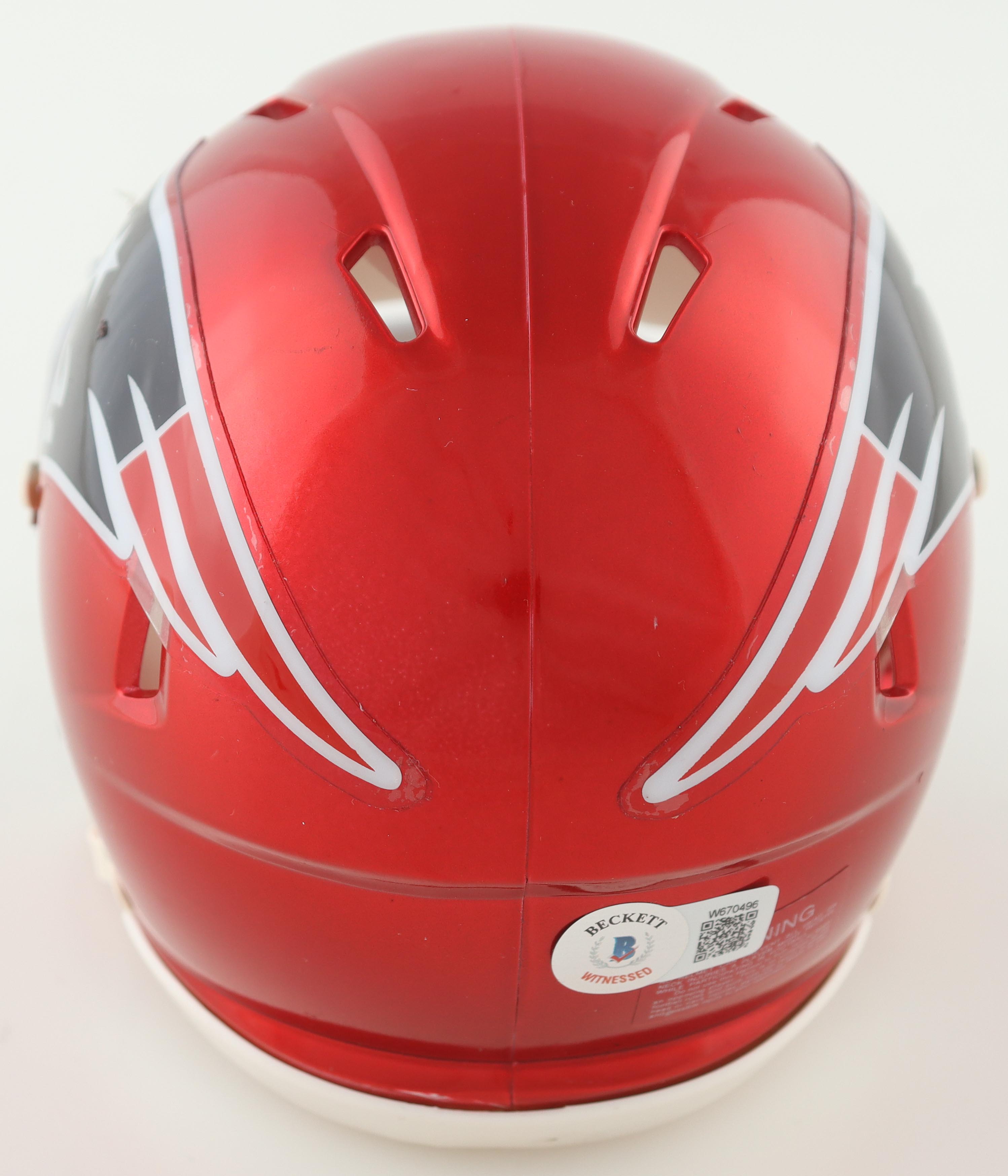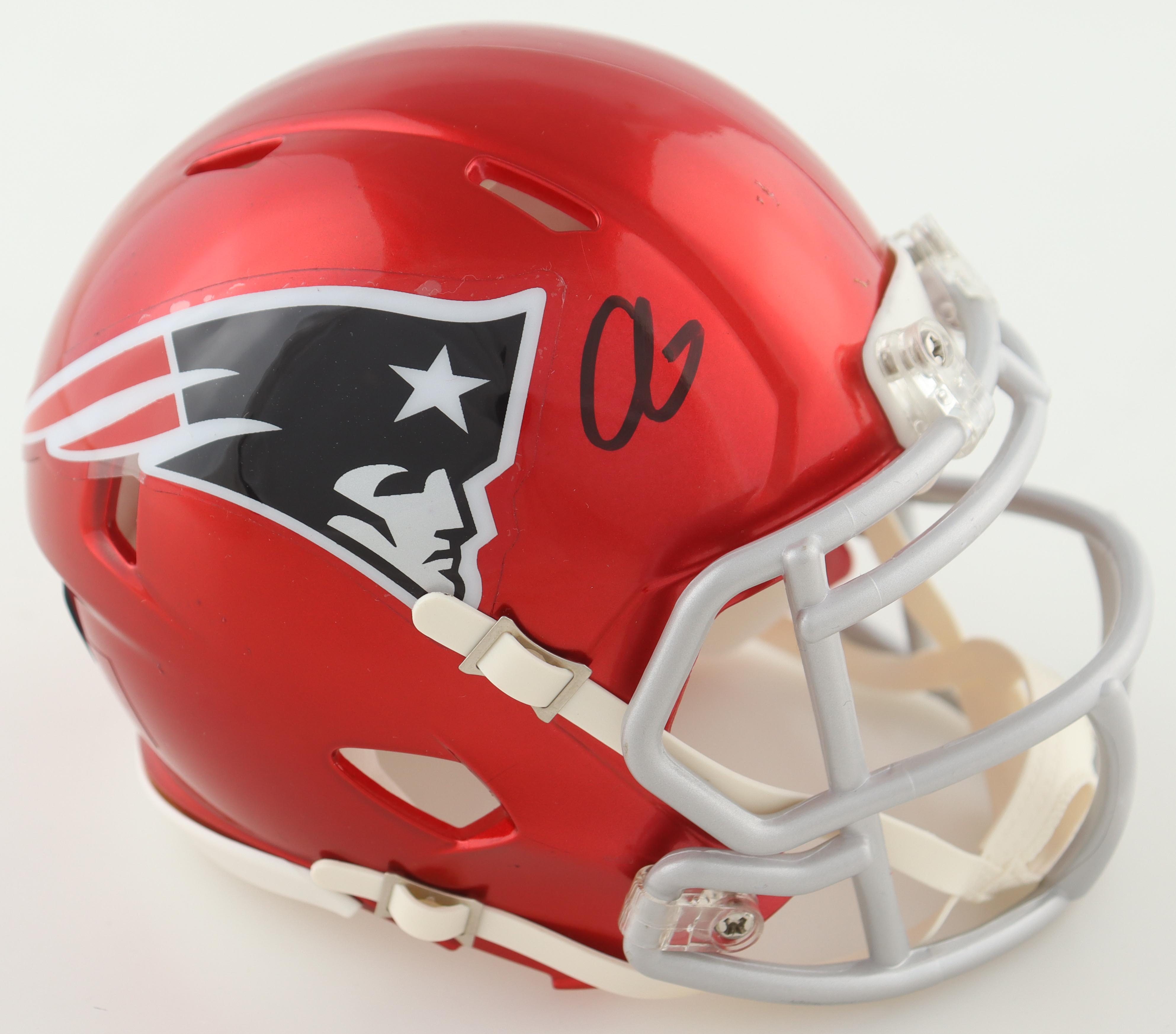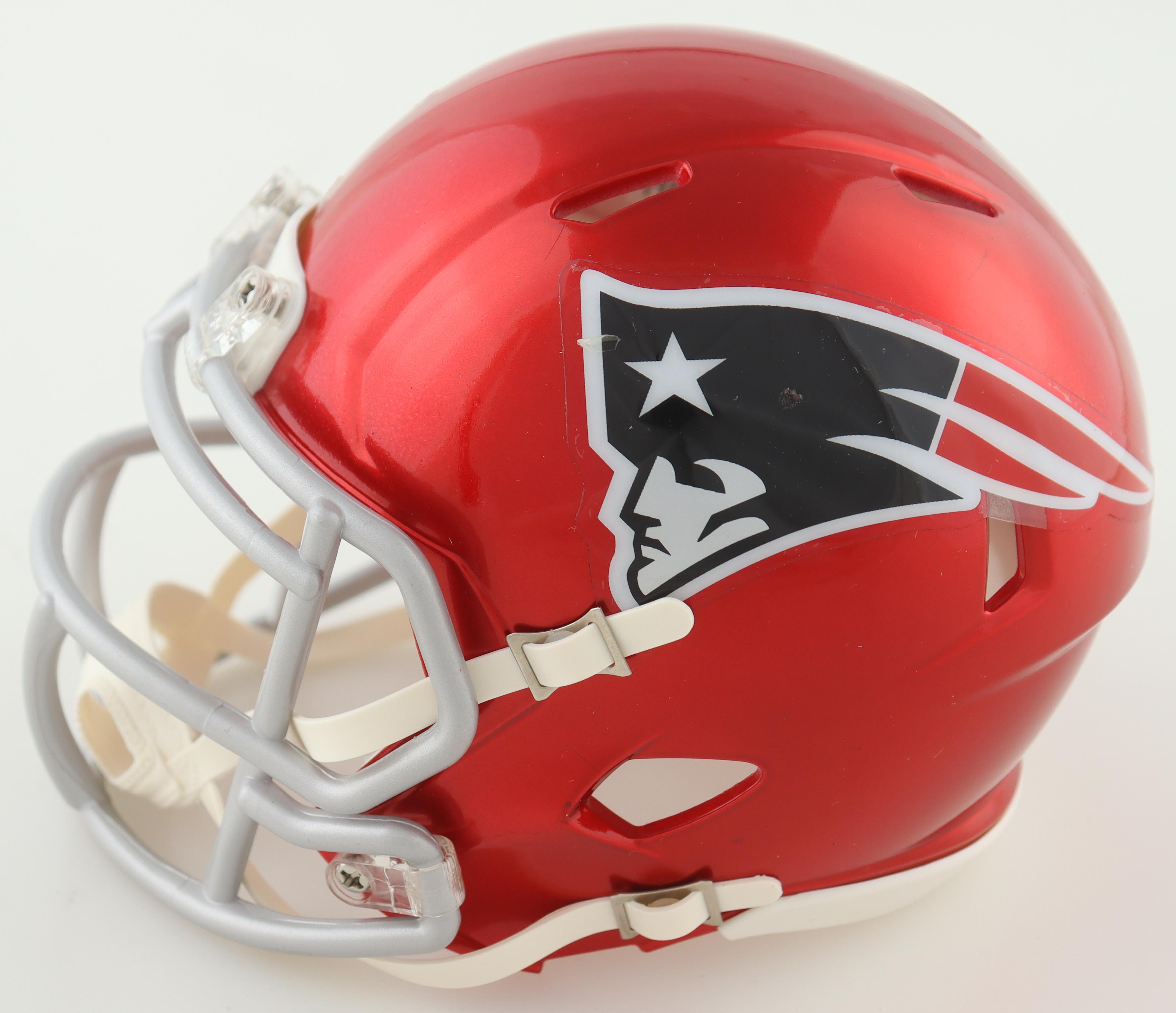 Riddell New England Patriots Flash Alternate Speed mini helmet. Hand-signed by Christian Gonzalez.