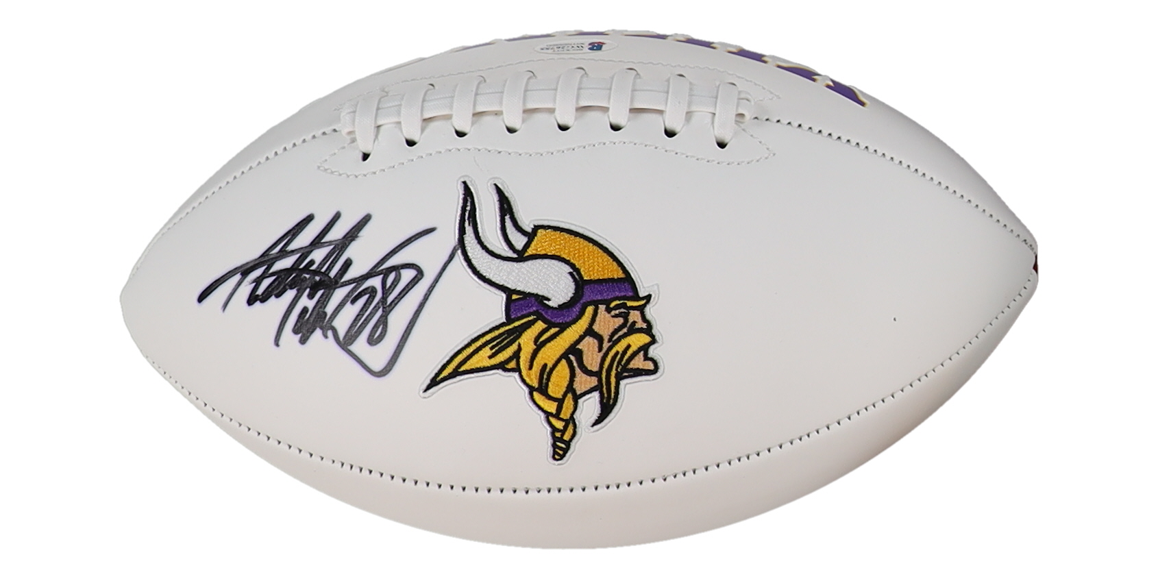 Minnesota Vikings logo football. Hand-signed by Adrian Peterson.