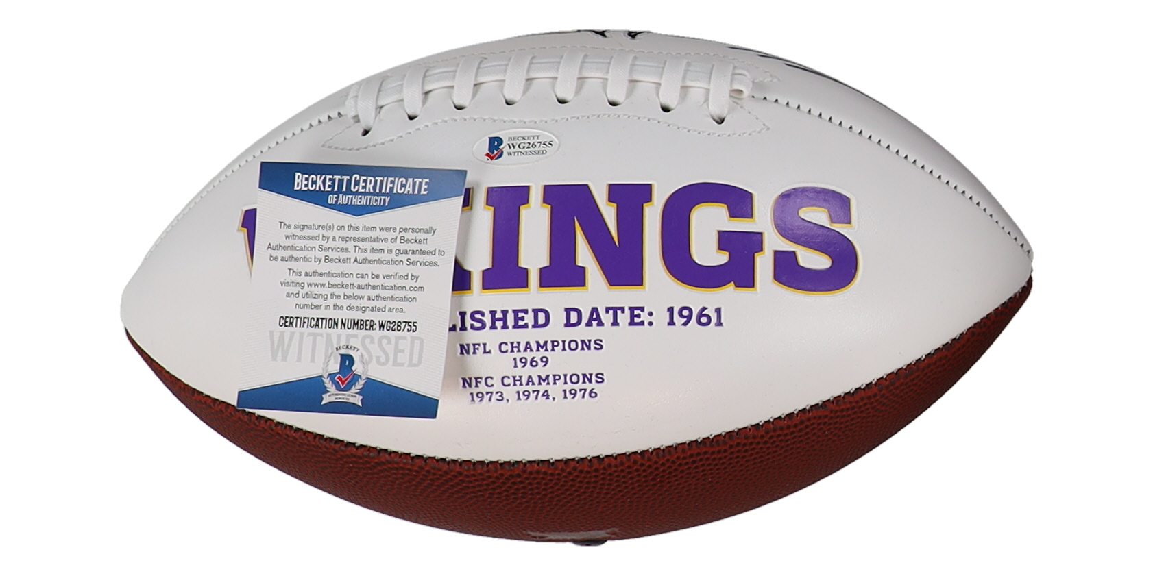 The autograph includes an official Beckett Authentication Services serially-numbered hologram and matching COA for authenticity purposes. The signing of this item was witnessed by Beckett.