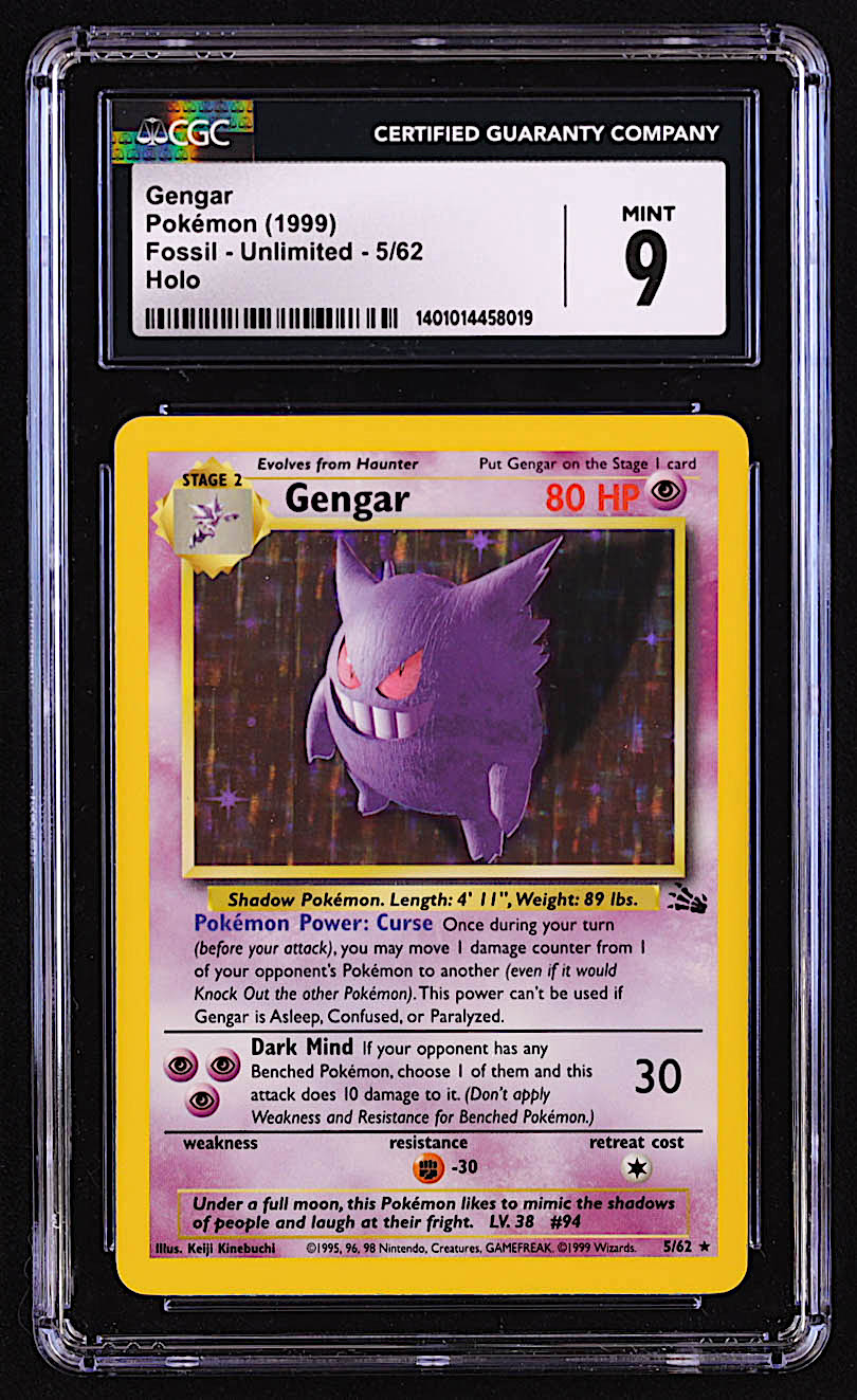 Gengar 1999 Pokemon Fossil Unlimited #5 Holo (CGC 9)